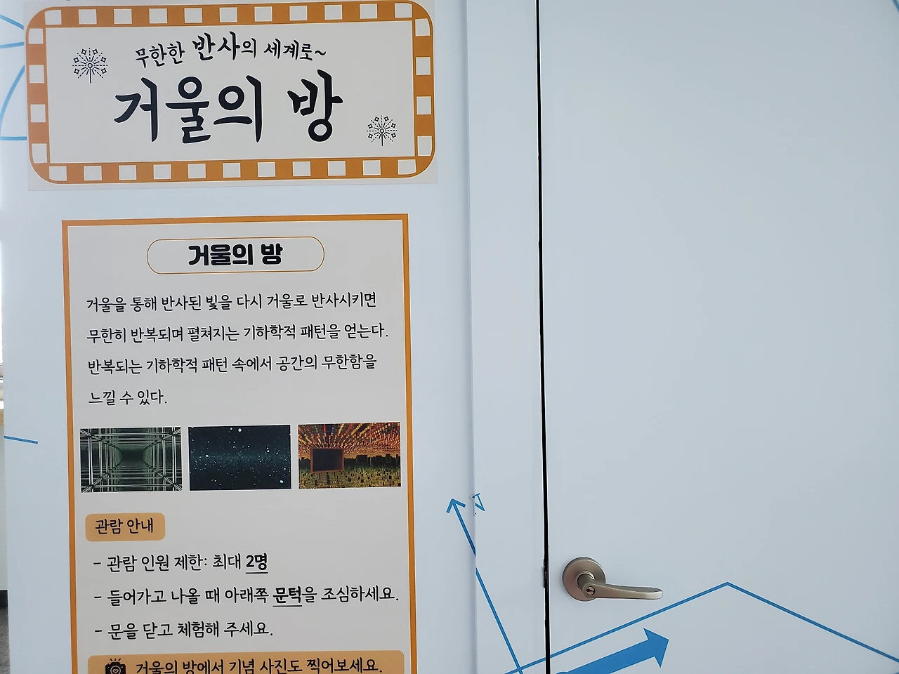 여기 거울 방인데요. 거울이 사방에 있어 어지러웠어요.