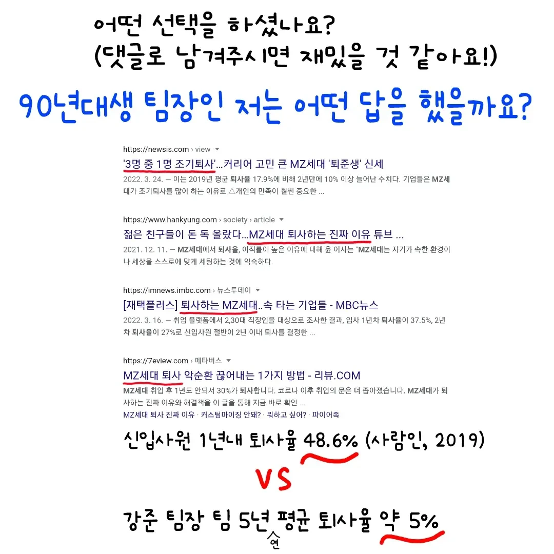 폴인은 가입이 조금 번거로우실 수도 있지만 저에 대해 궁금하신 분들이나 90년대생 팀장이 90년대생 팀원들과 어떻게 소통하는지 궁금하신 분들은 재밌게 보실 수 있을 것 같습니다.