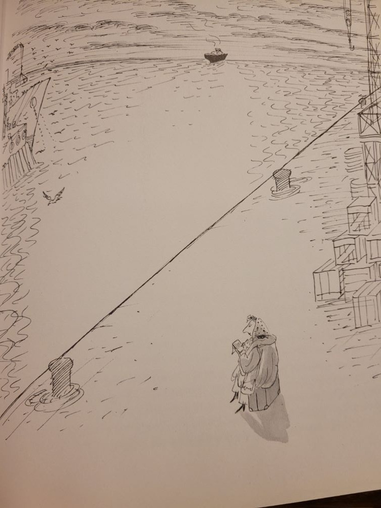 꼼짝도 할 수 없었죠. 선박의 트랩이 걷어 올려질 때, 뱃전에 팔꿈치를 기대고 서 있던 당신 모습이 눈에 선해요. 배가 멀어지기 시작하고, 내가 당신의 여행 가방을 깔고 앉아 있다는 걸 (마침내) 깨우친 당신의 절망스러운 몸짓이 아른거려요. - 거창한 꿈(장자크 상페 글/그림 중에서