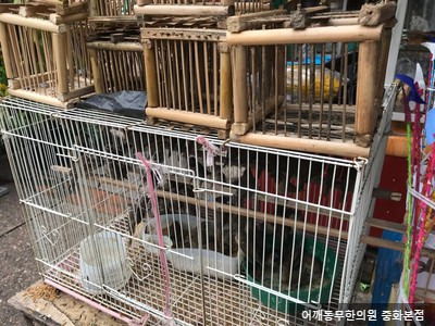 그런데 그 새장을 버스에도 들고 탄다. 무릎과 무릎사이가 붙어 가는 좁고 작은 버스이다 보니 닭만 아니면 괜찮다 싶었는데 어떤 날은 온통 새장 천지다. 그나마 새들은 새장에 들어있어서 무섭지는 않다.