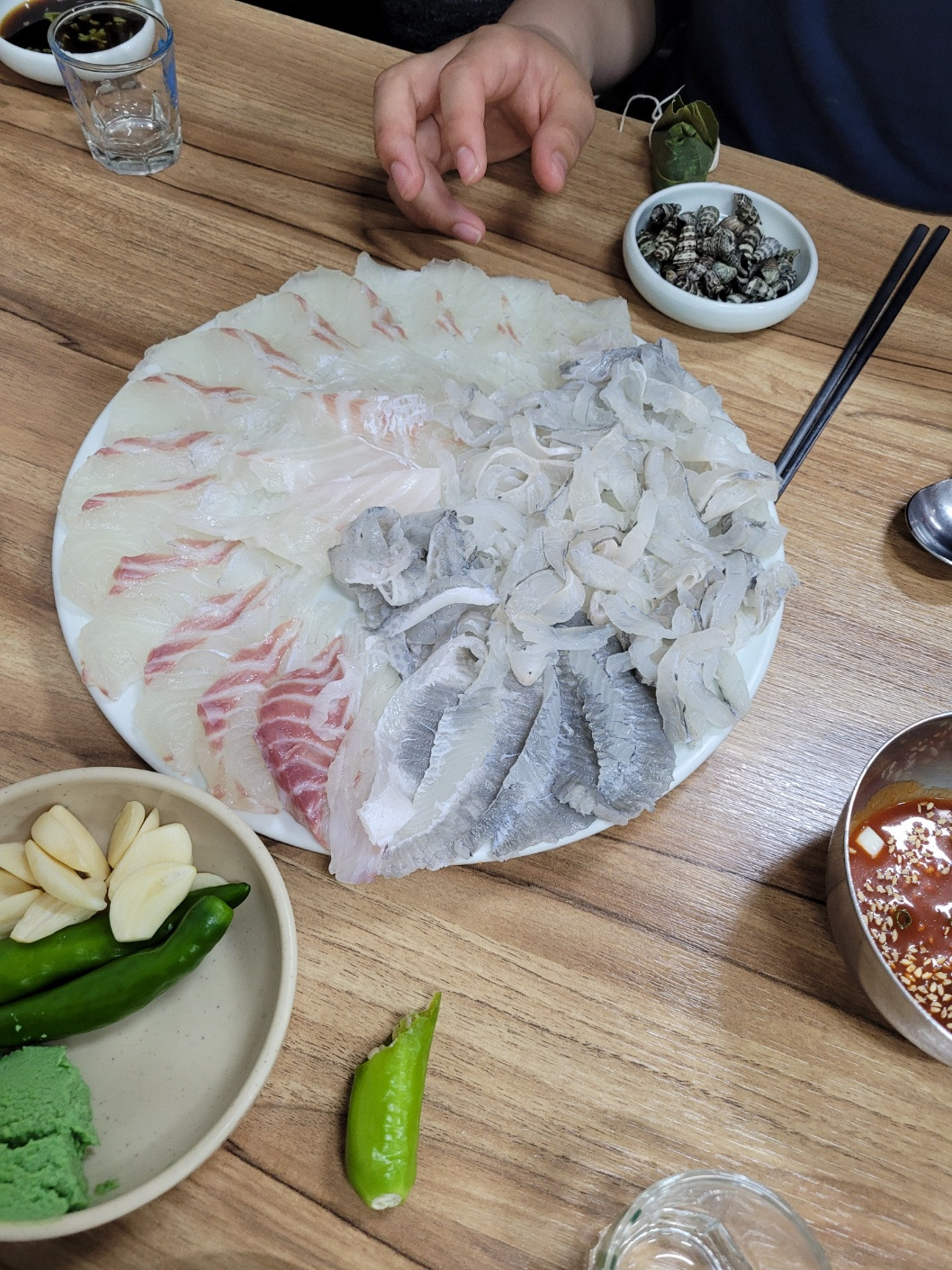 우리 애들은 회를 먹는다는 사실만으로도 엄청 칭찬을 받아 이미 기분이 하늘로 날아갔고 나는 대답만 했는데 주문이 끝났다.