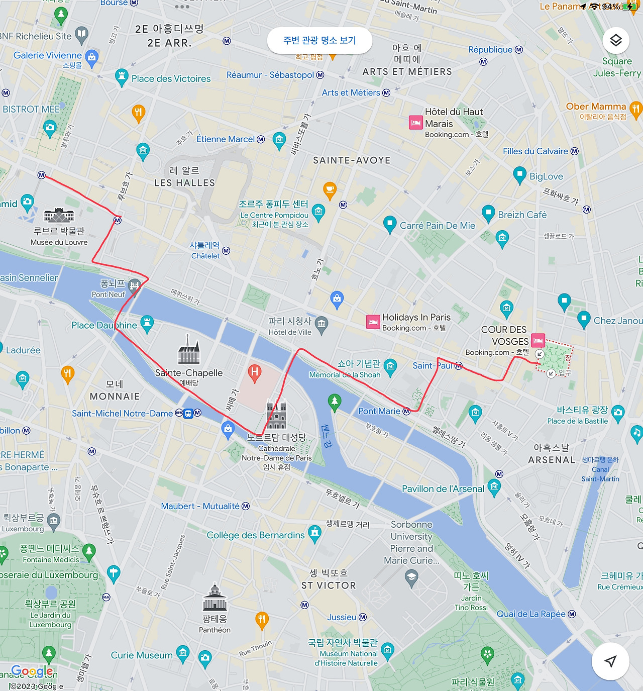 보주광장에서 시작해 루브르 박물관까지. 오늘의 도보 여행 루트