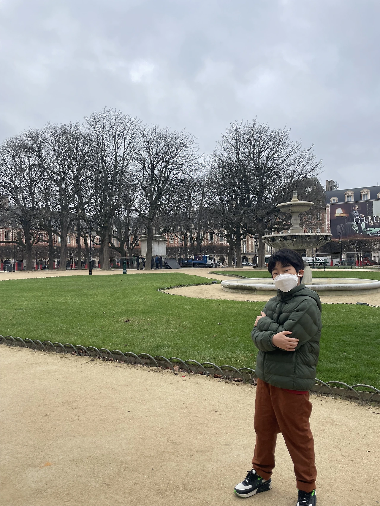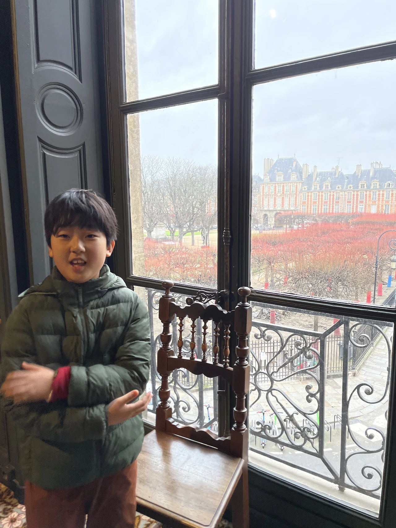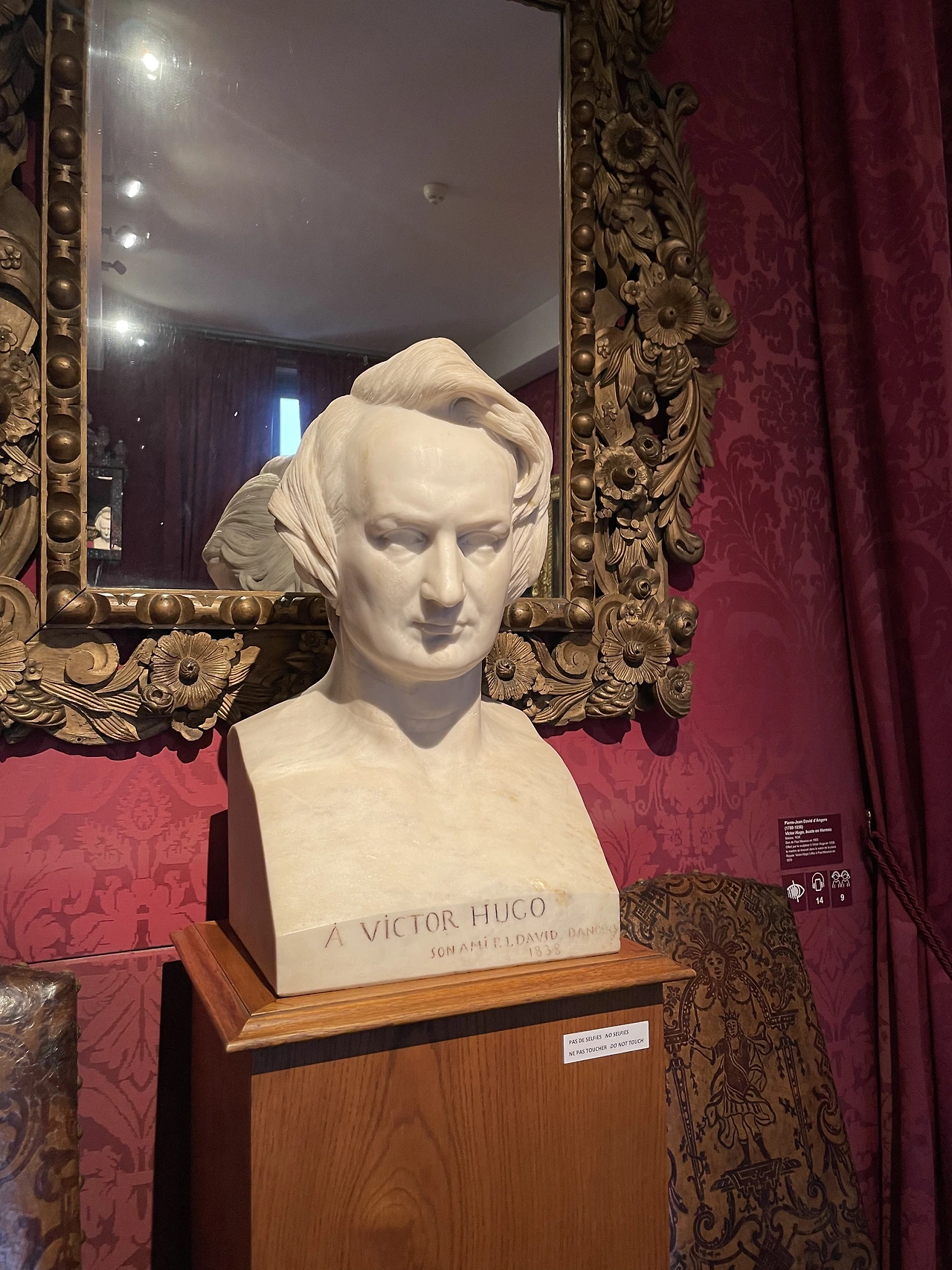 광장 안에는 아침에 모여 같이 운동하는 사람, 산책하는 사람들이 있었다. 날씨가 우중충 하고 다소 쌀쌀한 날씨라 많은 사람들이 보이진 않았다. 광장을 한 바퀴 돌며 구경하고, 레미제라블의 저자 빅토르 위고가 살았다는 저택이 있다고 하여 방문했다. 간단히 검색대를 통과하여 건물 안으로 들어가니 밖에서 볼 때와는 또 다른 느낌이었다. 오래된 세월의 흔적이 느껴지는 구조와 오래되었지만 잘 관리되어 세련된 느낌의 공존이랄까. 과거 프랑스 귀족들이 이런 곳에서 생활을 했겠거니 상상을 하니 또 다른 재미가 느껴졌다. 빅토르 위고의 저택은 그의 숨결과 발자취를 느낄 수 있는 기념관처럼 꾸며진 듯했다. 그의 흉상, 관련된 그림, 조각상 등이 전시되어 있었다.