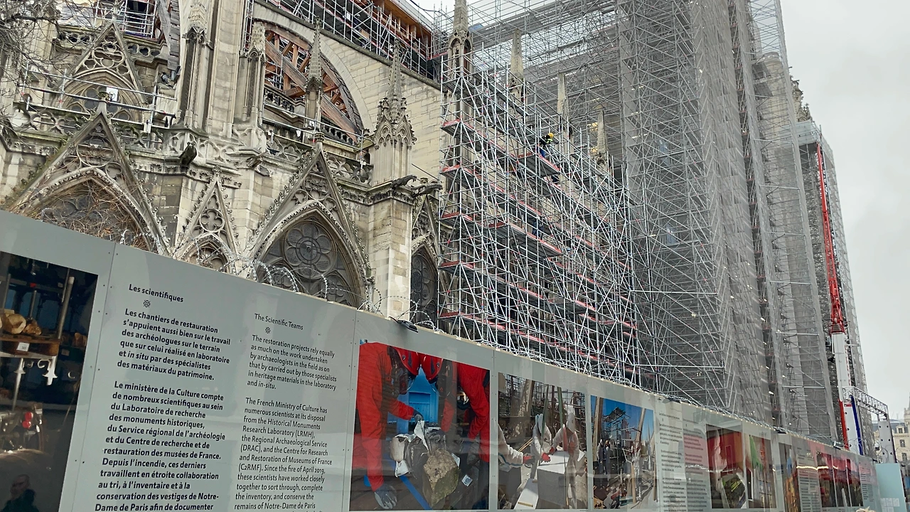 화재로 인해 소실된 성당의 복원 작업이 한창이다