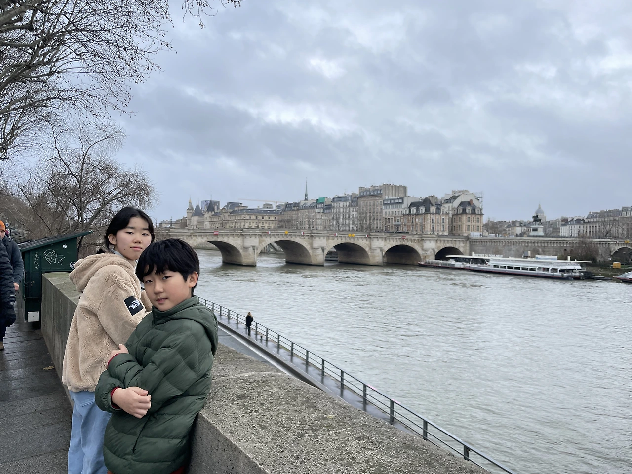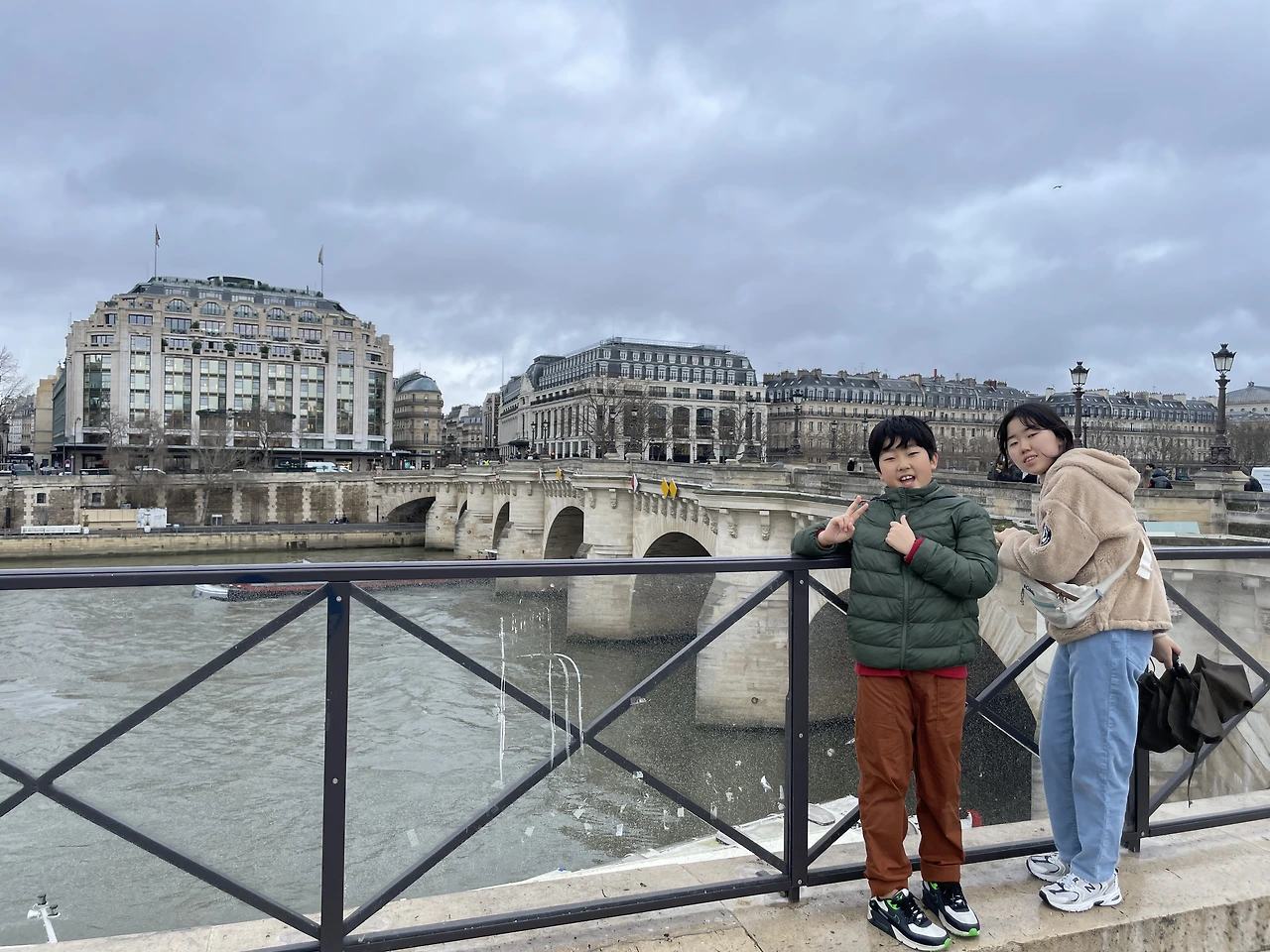 센강을 배경으로 사진도 찍어본다. 평소에 많이 걷지 않는 아이들이라 다리가 아플 때가 되었는데도 아직은 투정 부리지 않는다. 아이들도 오래간만에 나온 여행에 들떠있는 것 같다. 여행 다니면서 아이들의 기분상태를 알 수 있는 여러 방법 중 하나는 사진 찍기다. 유명한 장소에 도착해 사진을 찍겠다고 포즈를 취해보라고 하면, 기분이 좋을 때는 웃으며 순순히 시키는 대로 모델을 자처한다. 그러나 심신이 피곤하고 기분이 좋지 않을 때는 사진을 찍겠다 하면 참았던 불만을 한꺼번에 터뜨린다. 사진 그만 찍어라, 다리 아프다, 배고프다, 도대체 집엔 언제 가냐...