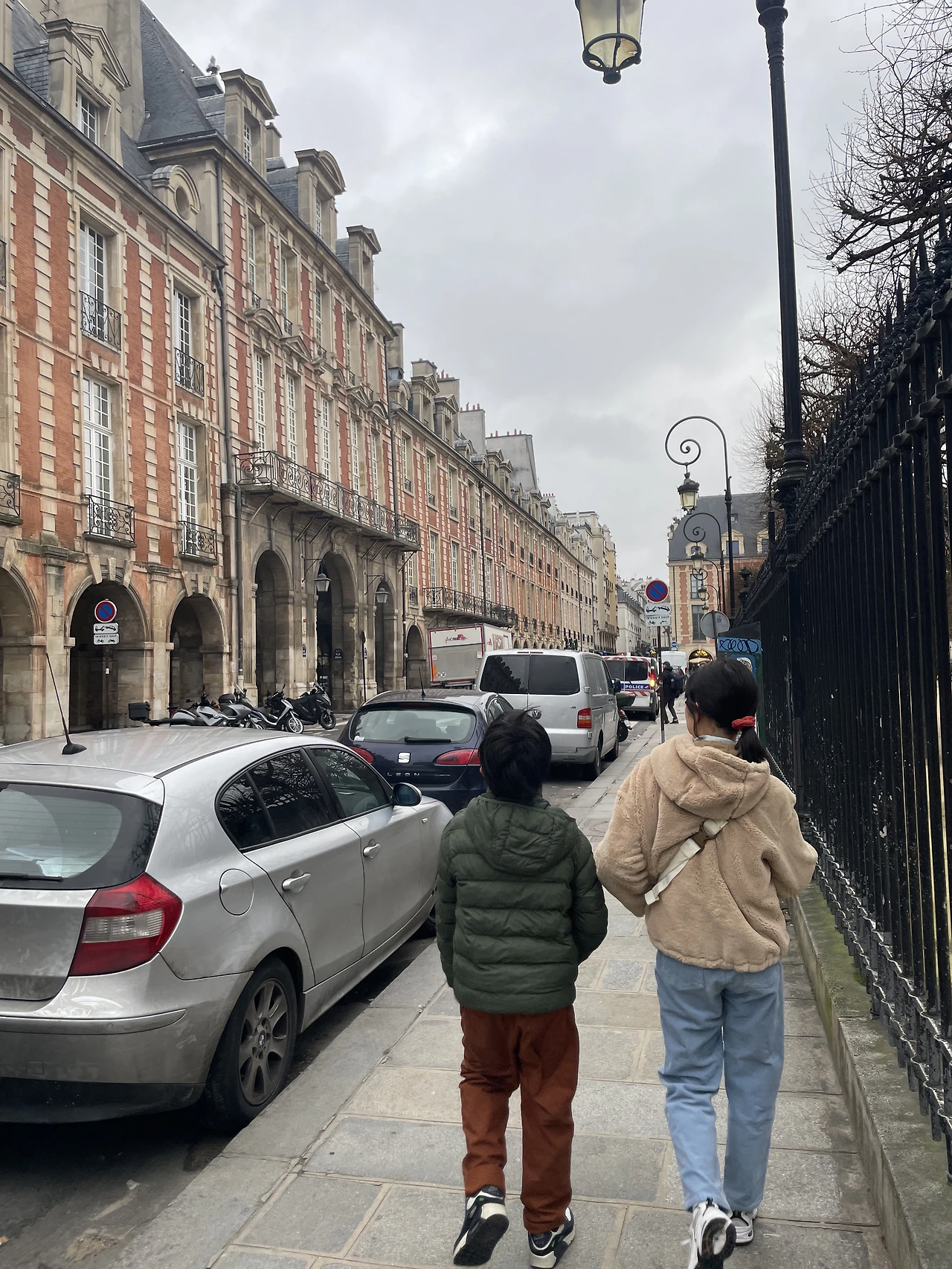 보주광장부터 루브르까지 한참을 걸은 아이들의 다리가 무거워질 무렵..