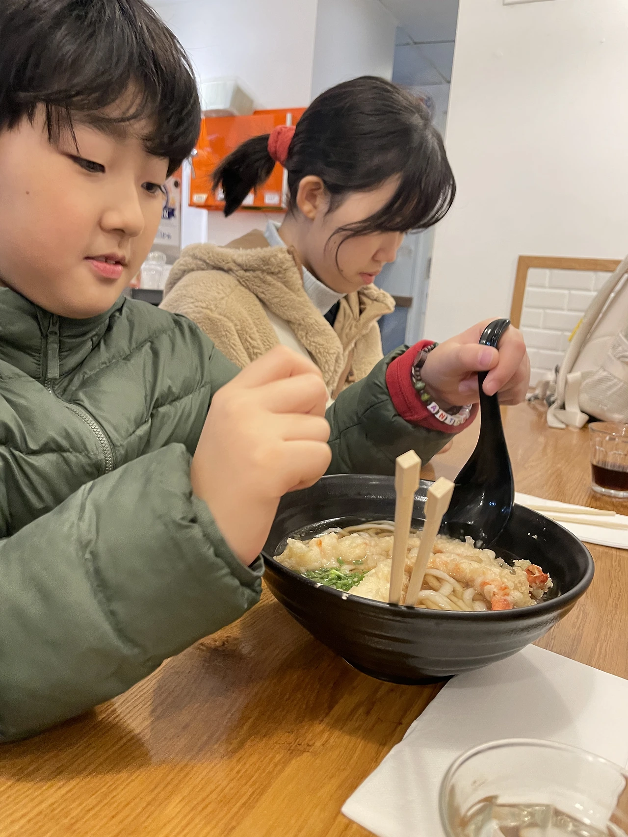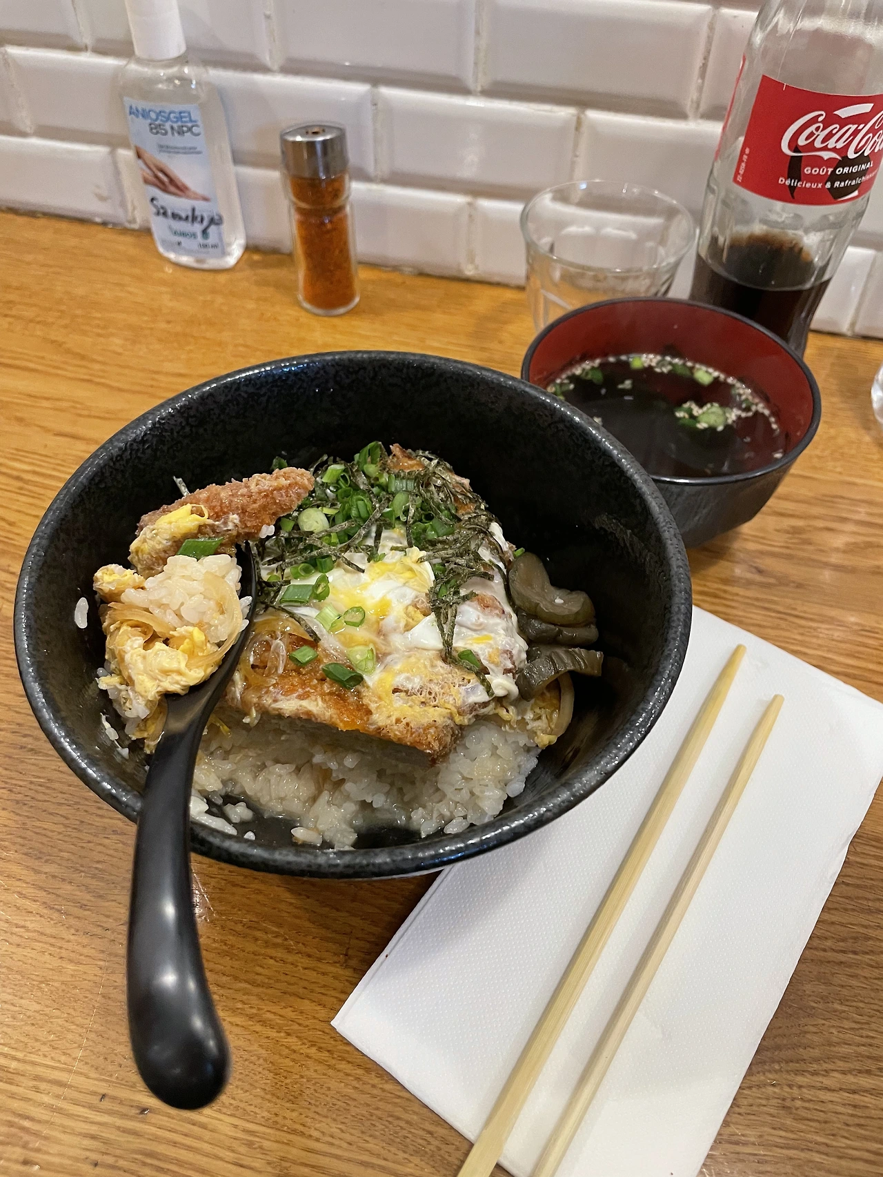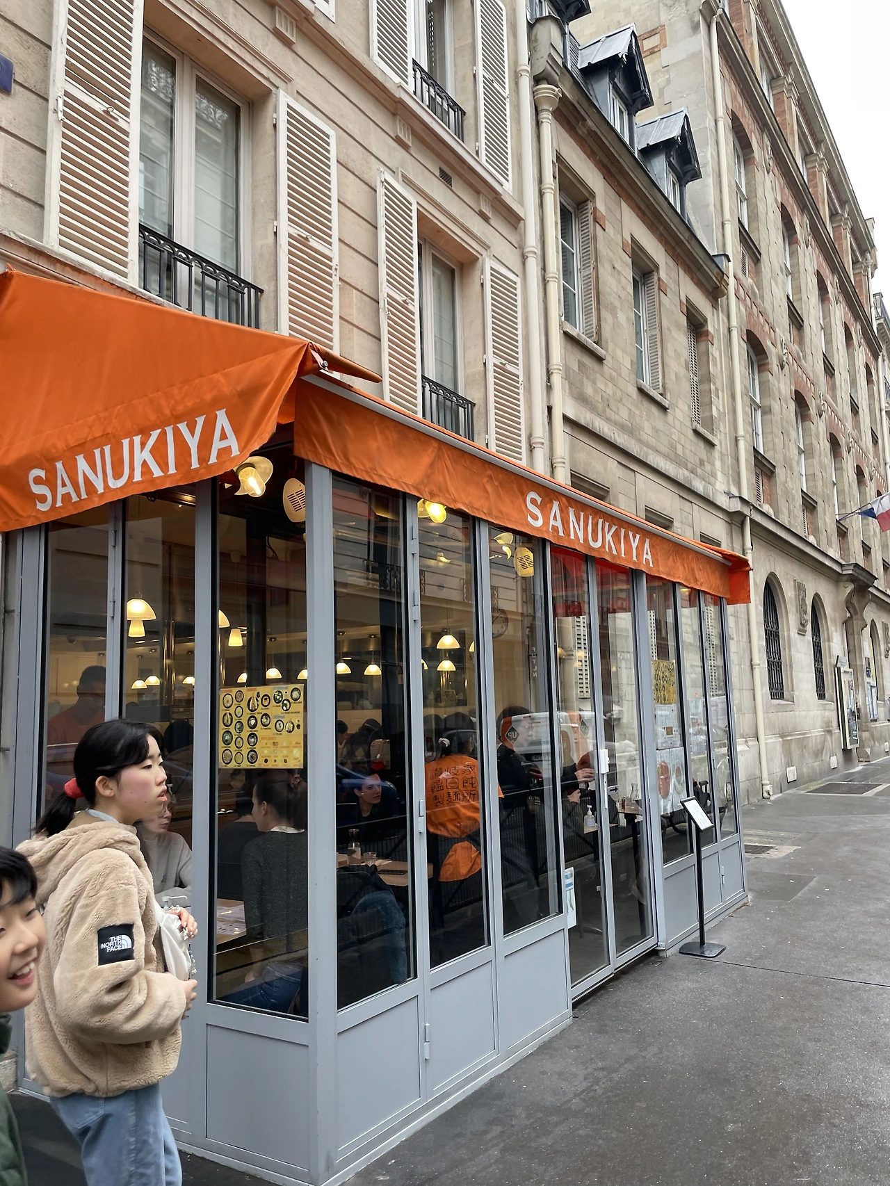 여행 오기 전에 파리에서 가볼 만한 식당 리스트를 뽑아서 구글맵에 저장을 해두었는데, 루브르 근처에 '사누끼야'라고 하는 일본인이 운영하는 일식집이 있다. 5년 전에 파리 루브르에 왔을 때도 여기서 우동을 먹었는데, 그때를 생각하며 다시 가보기로 한다. 비행기 기내식부터, 여기 도착해서 지금까지 빵만 먹은 아이들에게 우동은 반가운 메뉴다. 식당 앞에 도착했을 때는 다행히 대기 줄이 없었는데, 다 먹고 나올 때는 기다리는 사람들이 줄을 서 있다. 제법 알려진 식당이고 구글 레스토랑 평점도 높은 레스토랑이기도 하지만 무엇보다, 한국 여행객들에게 맛집으로 알려져 식당 안에도 밖에 대기줄에도 우리나라 여행객들이 많이 보였다. 우리는 튀김우동 2개, 카츠동 하나를 주문해서 나눠먹었다. 음식은 다소 짜게 느껴졌는데, 그 짠맛도 우리에겐 반갑게 느껴졌다. 음식과 콜라에 맥주 하나 포함해서 약 60유로 정도 (우리 돈으로 약 8만 원) 나왔다. 비싸다. 나중에 스위스 독일 등을 다니면서 이런 물가에 익숙해지긴 했으나 여행 초반에는 레스토랑에서 음식 값 계산할 때 손도 떨리고 마음도 불편한 상황을 몇 번 겪었었다.
