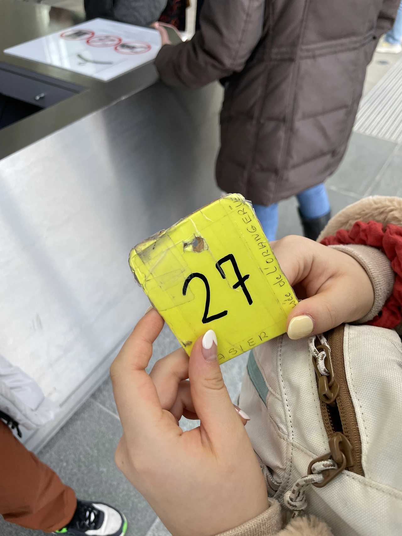 관람을 마치고 처음 들어갈 때 맡겨뒀던 가방을 찾으러 간다. 가방을 맡길 때 받았던 번호표를 꺼내서 직원에게 건네는데, 새삼 번호표가 재미있다.