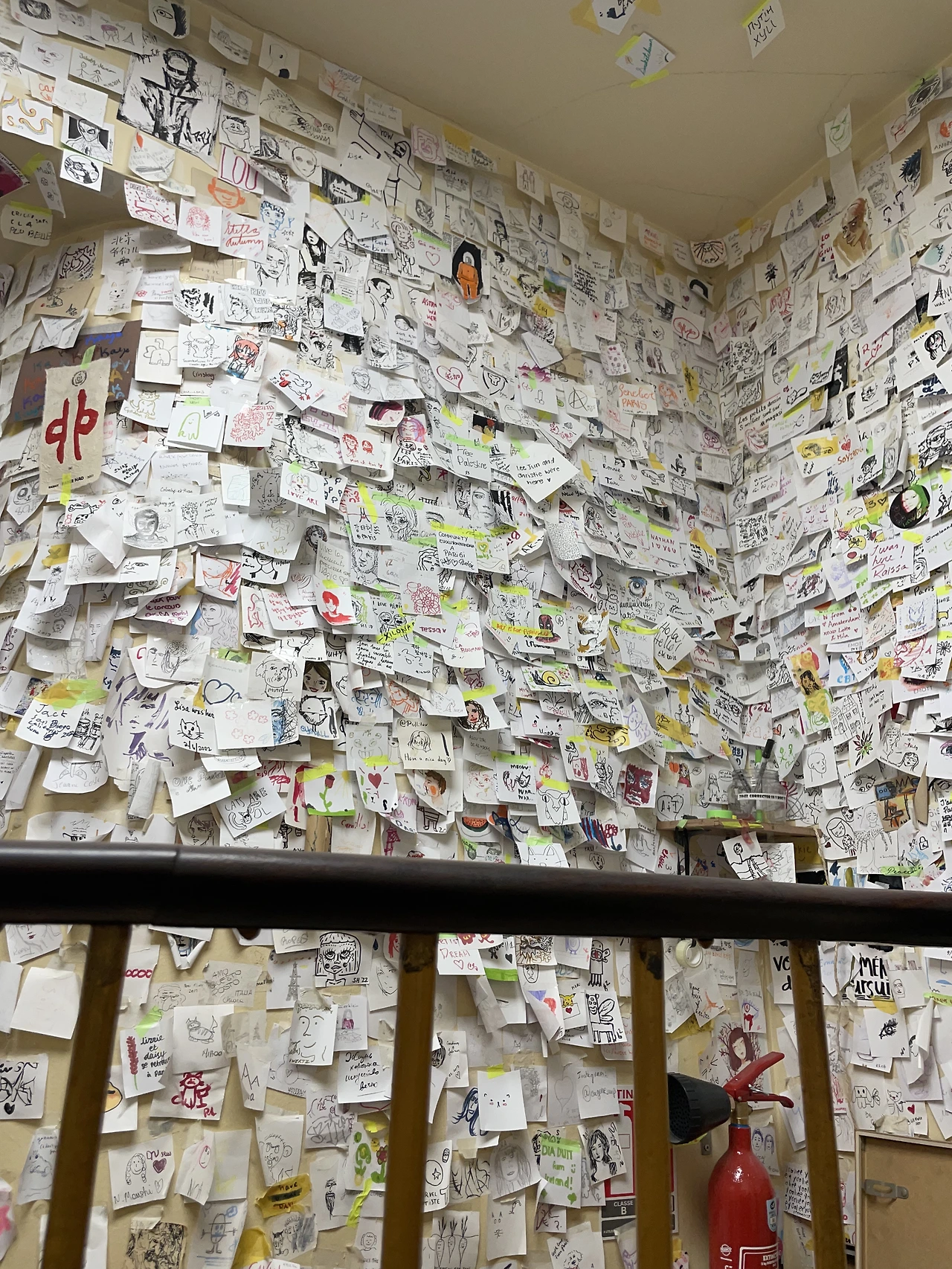 2층으로 올라가니 화방에 방문한 여행객들이 남긴 메모장이 한쪽 벽면에 가득하다. 단순한 화방이 아님을 그대로 말해주는 것 같다. 우리도 방문 흔적을 남기고 싶었으나 메모지를 찾지 못해 포기. 오랜 시간 동안 여기를 거쳐갔을 화가, 화가지망 학생, 유학생, 여행객들의 숨결이 느껴지는 듯하다. 계단을 오르는 중간 벽면에는 과거 씨넬리에 화방의 모습이 담긴 사진들을 벽에 전시해 두었다. 가게는 늘 같은 곳에 있고 간판도 그대로인데, 시간의 흐름에 따라 주변 배경이 달라지는 모습을 보고 있으니 오랜 세월이 나지막이 옛날이야기를 전해주는 것 같아 새로운 감상에 젖는다.