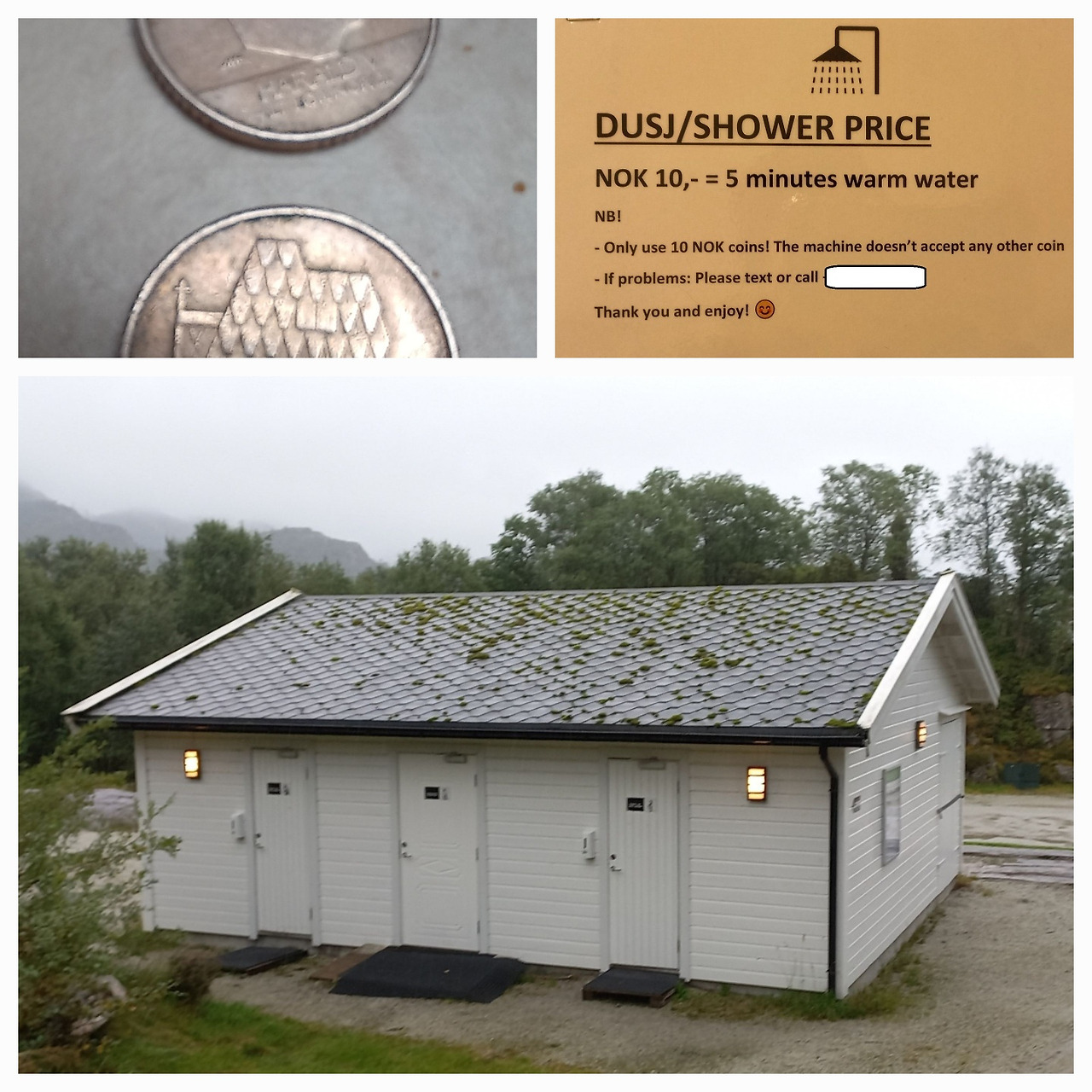 샤워실은 10크로네(1300원)! 정말 소액이지만 문제는 동전이 없었다는 것.
