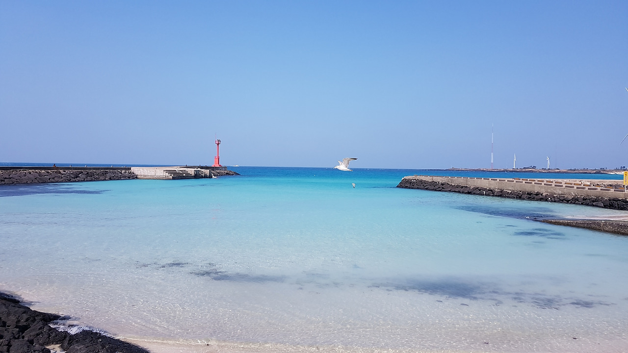 지난 밤, 음원 사이트에서 모처럼 다운로드 한 낯선 노래들로 휴대폰은 채웠다. 혼자만의 여행에서 음악이 주는 상승효과는 크기 때문이다. 차의 시동, 아니 전원을 켰다. 정숙한 전기차라 그런지 음질도 말쑥하다. 일주도로를 조금만 달려 김녕해수욕장에 차를 세웠다. 마치 처음 온 곳인 양 입가에 미소를 띠며 바다 공기를 힘껏 흡입해 본다. 언제든 올 수 있는 동네이니 굳이 한 번에 전 코스를 걸을 이유가 없다. 일단 주차장에서 가까운 바닷길을 따라 고고고~