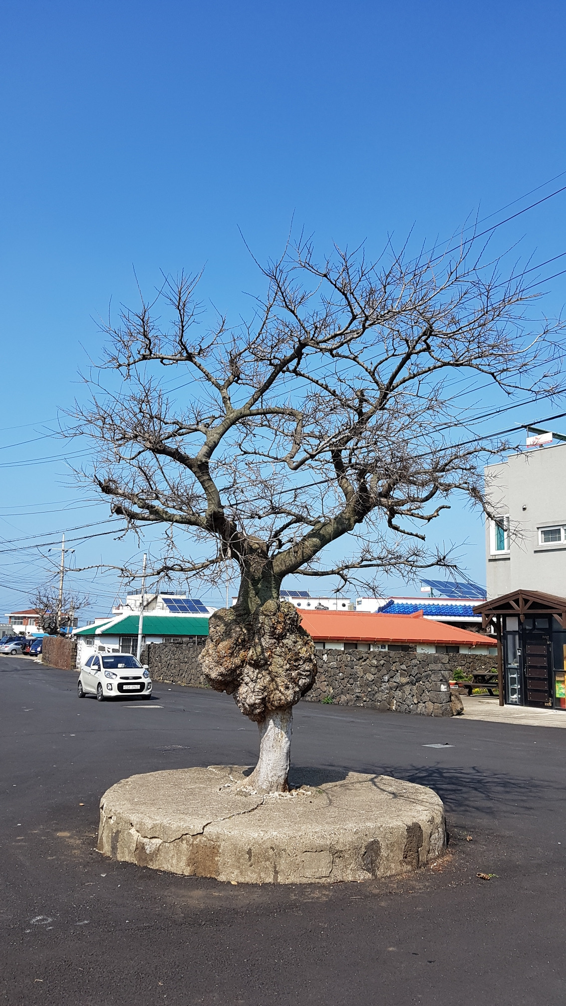김녕 성세기해변은 동쪽 제주에서 세화해변과 함께 물빛이 아름답기로 유명하다. 세기알 포구에서 첫 바다사진 찍기. 이런, 우연히 날아가는 갈매기가 찍혔다. 상서로운 징조다. 예전 등대역할을 했던 도대불과 야외목욕탕이던 청굴물을 지나쳐 마을 안길로 들어섰다. 줄기에 커다란 암덩어리(?)를 달고 있는 것 같은 독특한 폭낭(=팽나무) 한 그루, 돌담 너머로 잘 정돈된 어느 집의 정원 풍경이 낯선데 정겹다.