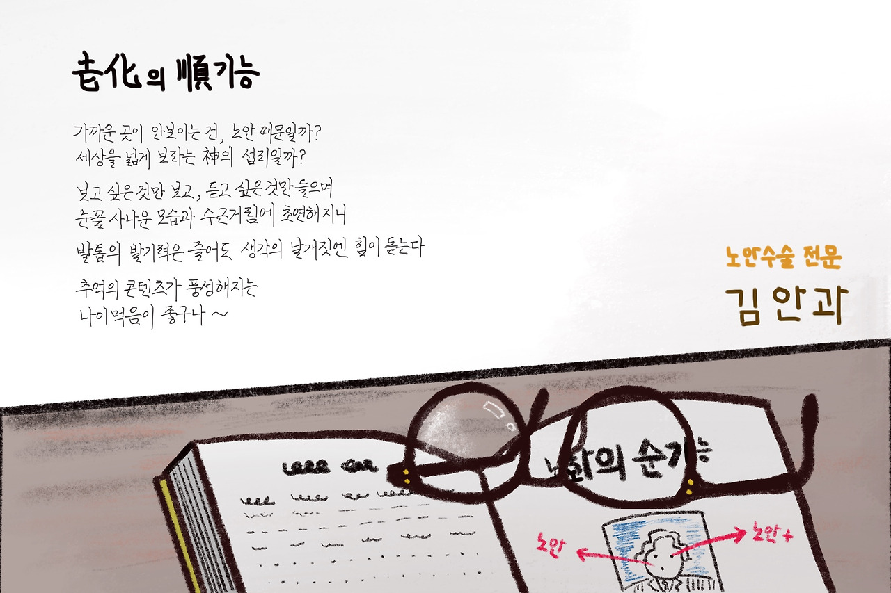 *해당 안과는 가상의 브랜드입니다. 안과의사 중 가장 많은 성씨가 김씨라 김안과도 어딘가에 분명 몇 개는 있겠죠. 혹시라도 동일한 상호의 안과의원이 있다면 해당 병원을 폄하하거나 비난하려는 의도는 전혀 없으니 너른 아량으로 이해해주시길 부탁드립니다.
