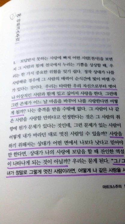 사랑을 하기 위해서는 상대가 어떤 면에서 나보다 낫다고 믿어야 한다면, 상대가 나의 사랑에 보답을 할 때 잔인한 역설이 시작되고 그 순간 나의 이상형은 없어지게 되는 거다. 어쩌란 말이냐... ㅜㅜ