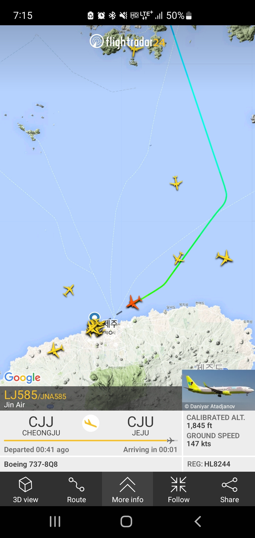 첨부한 사진은 Flightradar24라는 전세계 실시간 항공기 위치를 표시한 앱이미지다. 이 앱을 비행기 이륙전에 켜보면 내가 타고 가는 비행기의 이동 궤적을 미리 예측할 수가 있다. 바람 방향이 헷갈리면 그냥 이 앱을 이용해라. 제주 직전에 선회하는 비행기들의 위치를 보면 직관적으로 이해가 될 것이다. 또 인터넷이 안되는 하늘 위를 날다보면 발아래 지나가는 섬들이 어떤 섬인지 궁금해질 때가 있는데 비행기 타기 전 앞선 비행기를의 궤적을 확대해 가며 미리 공부를 해두면 창밖으로 보이는 섬들과 도시, 지형지물들을 보다 알차게 즐길 수 있다.
