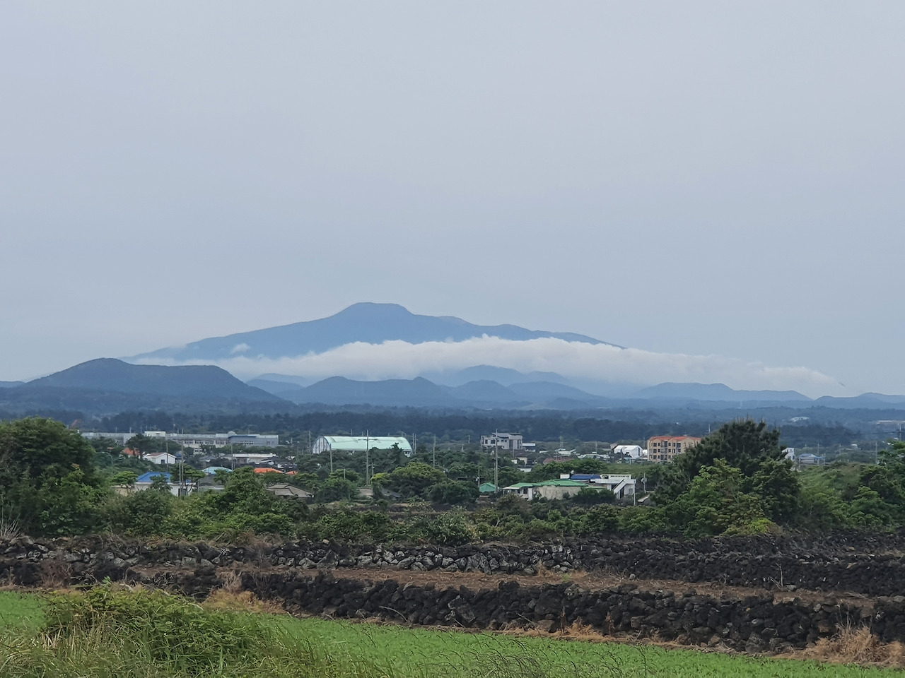 동네 하도리에서 바라본 구름 걸친 한라산(=동풍 불던 흐리고 서늘한 날)