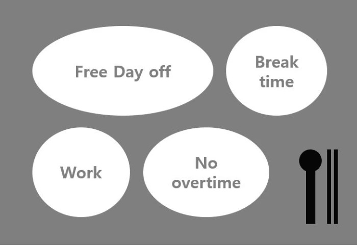 음, 대기업을 제외한 보통의 회사에게 휴식시간은 점심시간일 텐데 1시간이냐, 1시간 30분이냐에 따라 정말 만족도가 달라진다. 에이전시 특성상 프로젝트에 투입되면 고객사의 업무 시간에 따른다. 글쓴이가 다니는 회사는 1시간이고 시간이 부족하다거나 하는 불만은 없었다. - 고객사에 들어가 1시간 30분의 점심시간을 경험하기 전까지는, (잘 선택하도록 하자)