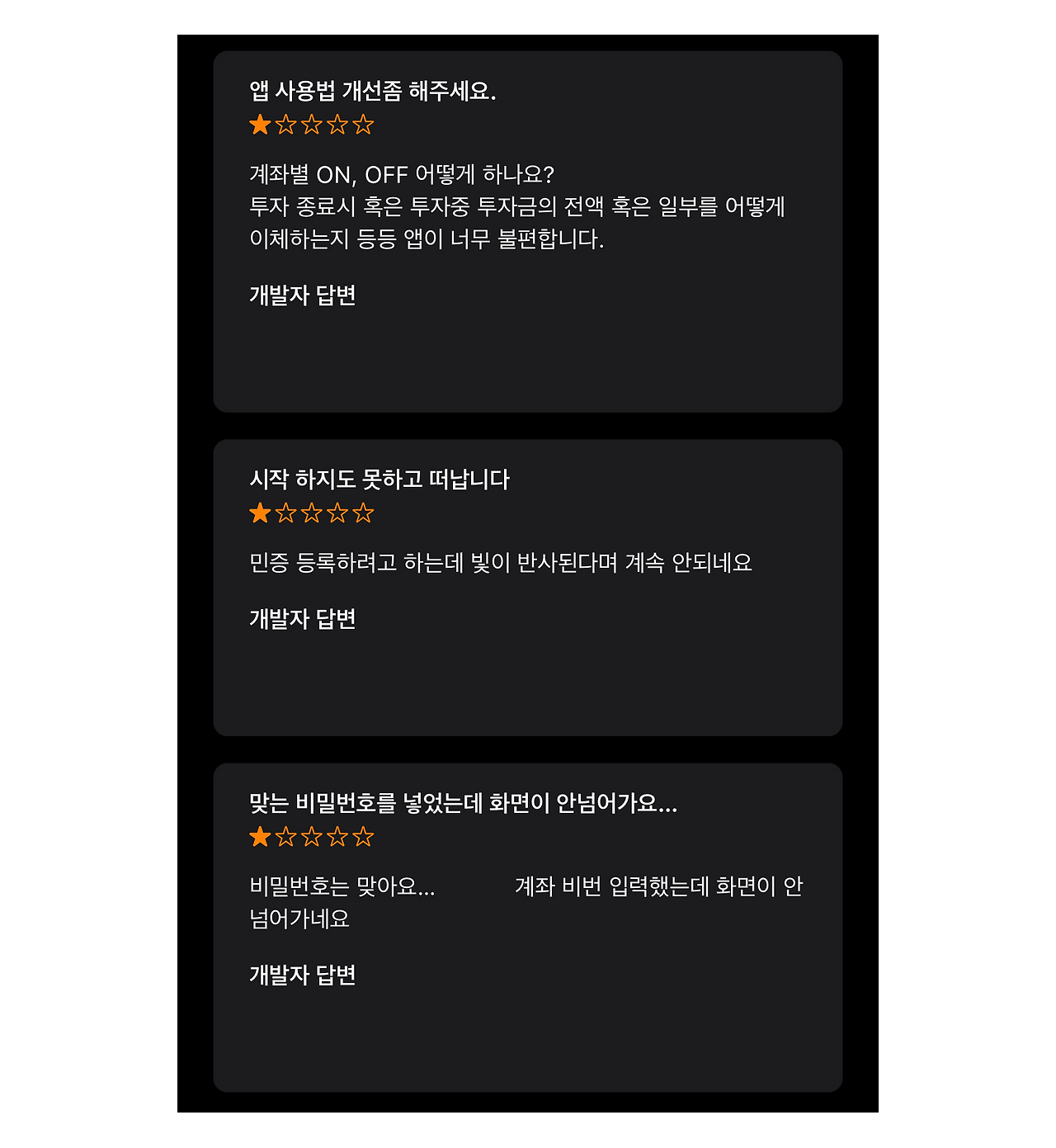 글을 쓰는 지금도 서비스 관련 해시태그를 검색하면 보이는 고객의 서비스 후기가 작성된 피드에, 스토어에 올라온 앱 리뷰에, 오픈채팅방에 올라오는 고객들의 소통에, 카페 등 커뮤니티에서 오가는 수많은 글에서도 고객들은 자신이 부딪친 문제를 공유하는 중입니다. 간혹 어떤 고객은 문제에 대한 해결책을 제시하기도 할 정도로 우리가 해결해야 할 진짜 문제들이 떠다니고 있습니다. 책상 앞에서 머리를 맞대고 무한한 상상의 나래를 펼치는 것보다 직접 움직인다면 더 정확하게 고객의 진짜 문제를 찾을 수 있을 거예요.