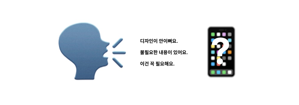 입사한 지 한 달이 돼 가던 어느 날, 운영 중인 앱을 개선하자는 의견이 나왔다. "화면의 UI가 이쁘지 않은 것 같아요.", "꼭 필요한 가이드일까요?", 개인적으로 이 기능은 꼭 필요해요." 등 다양한 이유가 있었고, 그렇게 시작한 우리만의 아이데이션이 시작되었다. 그리곤 단숨에 와이어프레임까지 만들어져 팀장님에게 리뷰를 하게 되었다.
