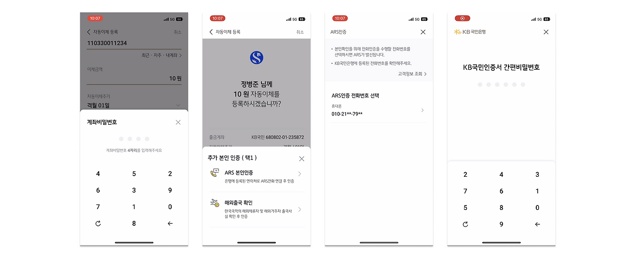 제가 경험한 ARS 본인인증은 두 자리의 변수가 노출되고, 전화를 받아 숫자를 입력하고 끊는 방식으로 진행이 되었었는데 KB스타뱅킹은 좀 달랐어요. 전화를 받으면 수십 초간 기다려 음성으로 안내받은 번호를 눌러야 인증이 완료됩니다. 만약 안내받는 번호가 변수라면 높은 보안 유지가 가능했겠지만, 몇 번 시도해 보니 고정된 숫자를 안내해 주는 걸 확인했고 불편하다는 생각만 들었어요.