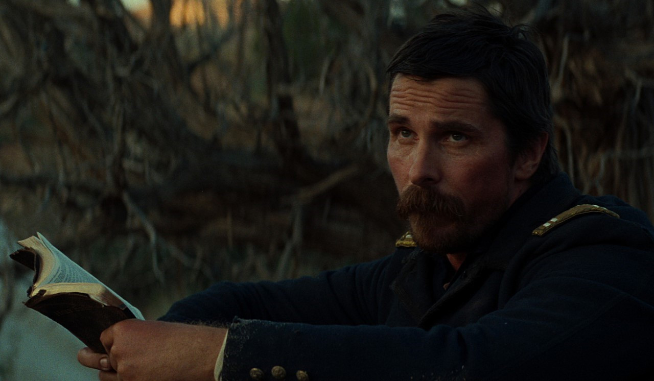 제목 타이틀 이후의 상황은 180도 다르다. 군인들이 도망간 아파치족 가족을 잡아오고 있다. 주인공 조셉 대위(크리스찬 베일 扮)는 이를 가만히 지켜보고 있다. 이렇게 가해자와 피해자가 뒤바뀐다. 조셉은 평생을 원주민과 싸워 온 인물이다. 그 과정에서 원주민에게 잔인하게 동료들을 잃었고, 자신도 잔혹하게 원주민을 학살해왔다. 그는 원주민의 야만을 가장 뼈저리게 느낀 사람임과 동시에 자신이 야만의 길로 들어선 인물이다. 아이러니하게도 그에게 일생일대의 적이었던 옐로우 호크 추장을 몬태나까지 호송하라는 임무가 주어진다. 조셉 대위는 원치 않는 짐을 지고 가는 길에 영화 첫 신의 일가족 몰살 현장을 지나게 된다. 그곳에는 가족을 모두 잃고 실성한 로잘리(로자먼드 파이크 扮)가 있다. 그녀에게 원주민은 두려움과 공포의 대상. 그녀가 이 여정을 함께 하게 되면서 영화는 본격적으로 용서와 화해의 서사를 시작한다.