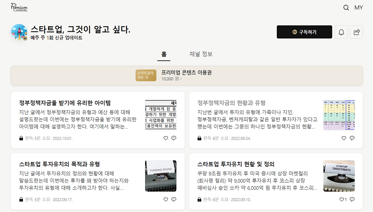 네이버 프리미엄 콘텐츠에 '스타트업의 모든 것'이라는 채널을 개설하였습니다.