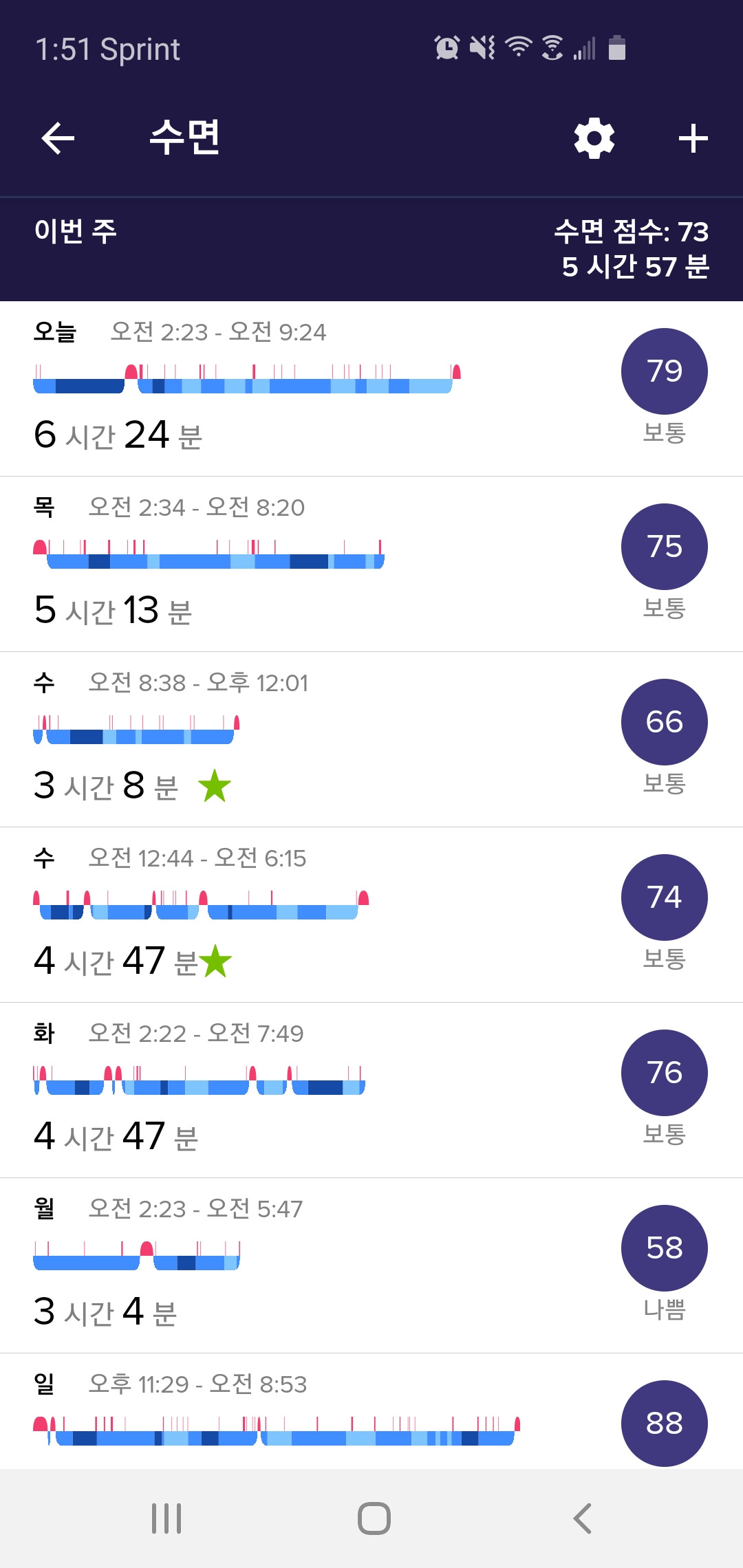 > 오히려 줄어든 수면시간으로 인해 깨어있는 시간의 업무 집중도나 효율이 떨어진 느낌이었다.