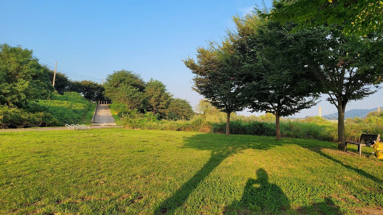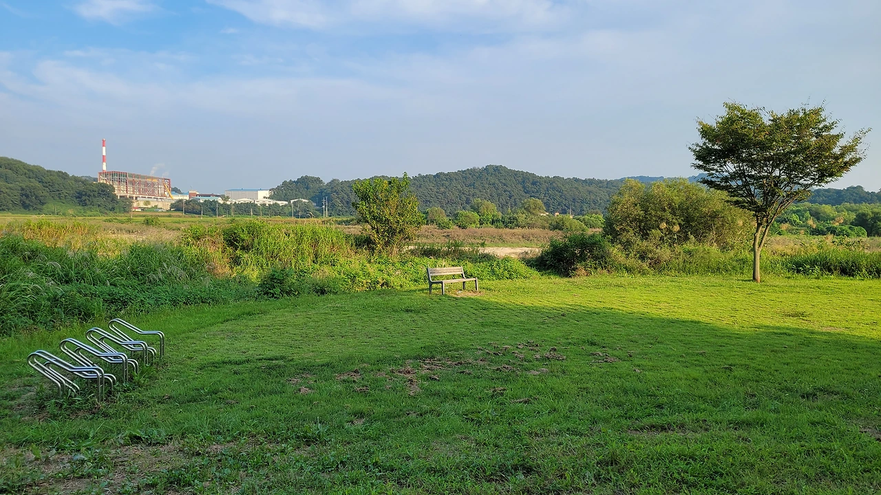 이제 미호천 곁으로 왔다. 미호천은 생각만큼 멋스럽거나 여행자로서 즐길만한 곳은 아니었다. 10여 년 전 국가의 4대 강 사업에 따라 국가하천 중에 하나인 이곳에 원주민들은 쓸 생각이 없는 자전거 도로가 천변의 식생을 무시하고 자라났다. 이곳이 양재천인지 미호천인지는 중요하지 않았다. 드문드문 제대로 복장을 입은 자전거 라이더들이 내 뒤에서 앞으로 시원스럽게 직진을 했고, 가끔 나처럼 반바지에 펑퍼짐한 티셔츠를 입은 사람들도 천변을 무비판적으로 지나가고 있었다. 여행자로서 끝없이 펼쳐진 강변의 풀밭을 아스팔트 위에서 함께할 수 있는 것은 양면성이 있었다. 일부러 가끔 아스팔트 옆 풀이 난 땅을 밟으며 발을 달래주기도 했다.