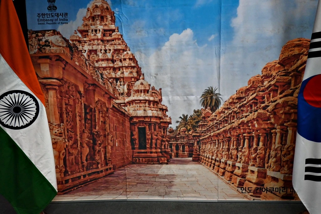 로비에 들어서자 인도의 붉은 사원과 파란 하늘이 펼쳐진 포토월이 가장 먼저 눈에 들어왔다. 두 나라의 국기가 나란히 서 있는 그 장면은 멀리 떨어져 있지만 마음으로는 가까운 두 문화가 한 자리에서 살며시 인사를 건네는 것 같았다.