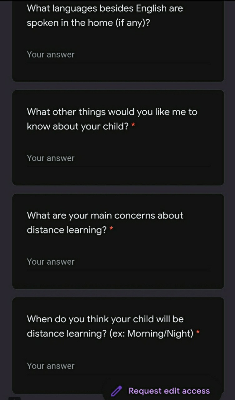 마지막으로, Distance Learning (온라인 교육 시스템)에 대해 학부모와 아이가 어떻게 생각하는지 의견을 묻는 항목도 있다.