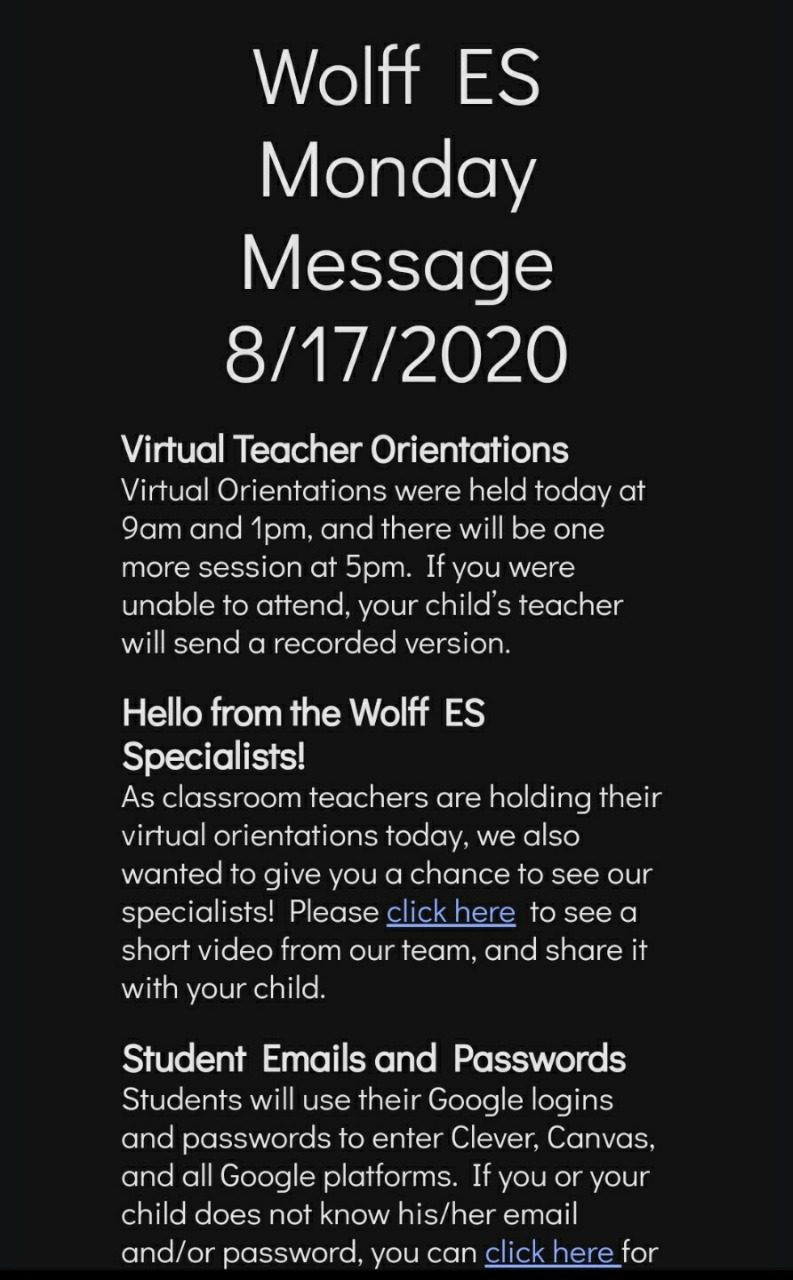 온라인 미팅 오리엔테이션, 매주 월요일 교장선생님의 이메일 메시지