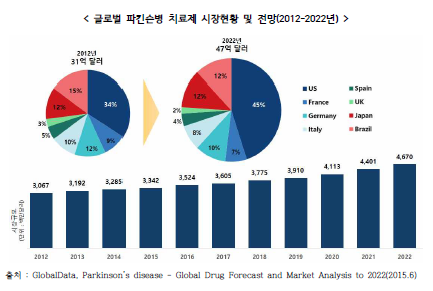 의료용 마리화나(Marijuana)가 신경퇴행성 질환 치료제의 천연물의약품 소재로서 자리를 한다면 현재 추정되는 대마(Cannabis)의 시장규모와 잠재력에 개별 병증 치료제의 시장규모가 포함되어 더욱 큰 시장규모와 잠재력을 가지게 될 것입니다.