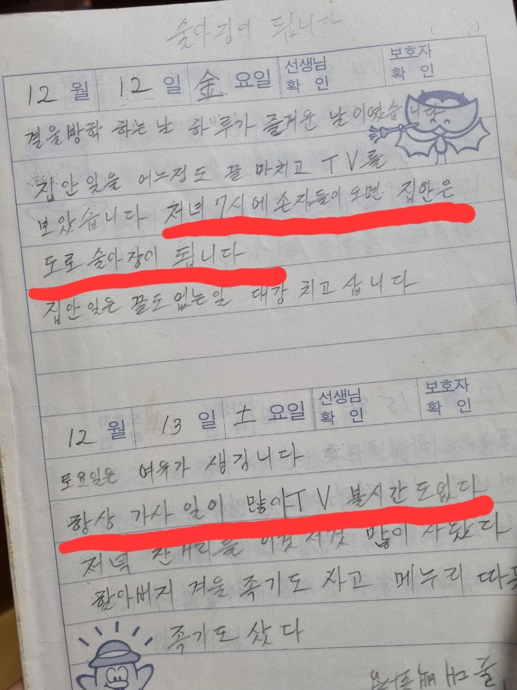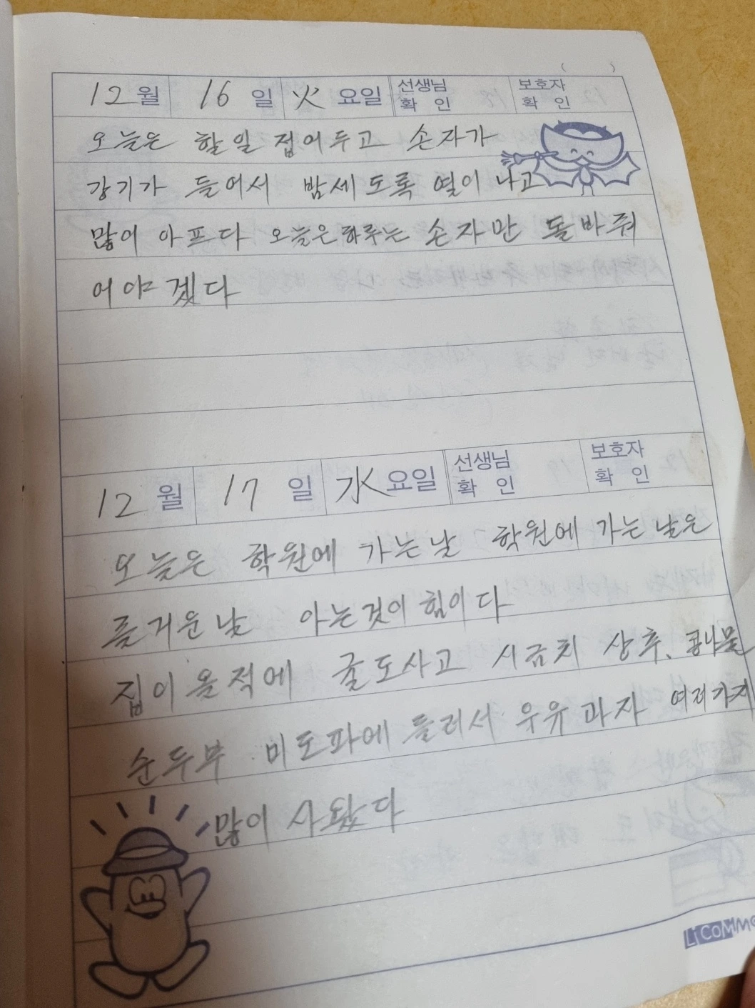 산수와 한글을 가르쳐드리며, 할머니와 다정하게 보냈던 추억들도 꺼내본다.