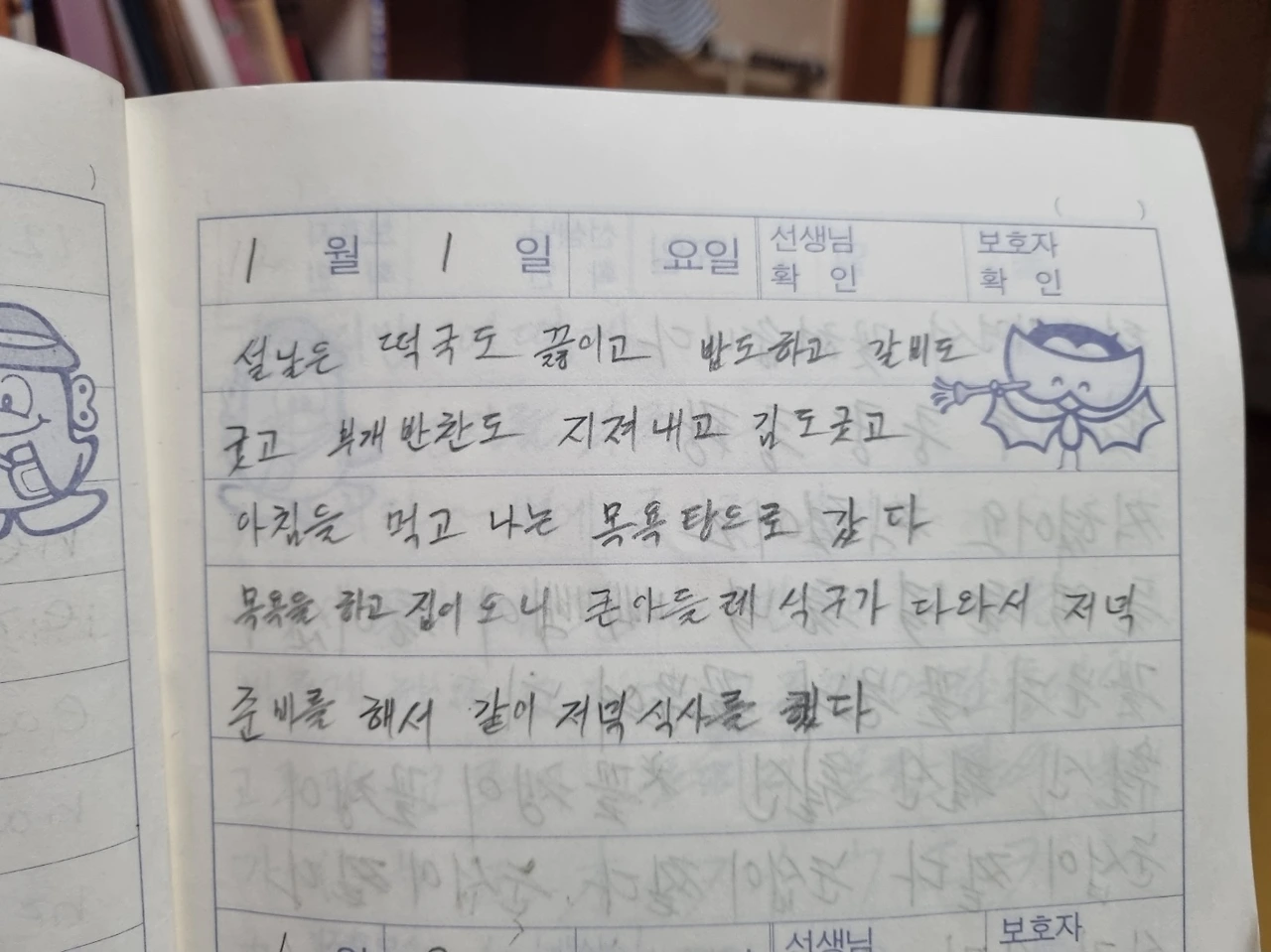 초등학생인 나에게 한글을 가르쳐달라고 하셨다.