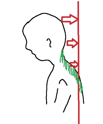 짧아져 있고 힘을 못쓰고 있는 앞목근육으로 고개를 제 위치에 가져다 놓는 것이 필요할 때입니다.