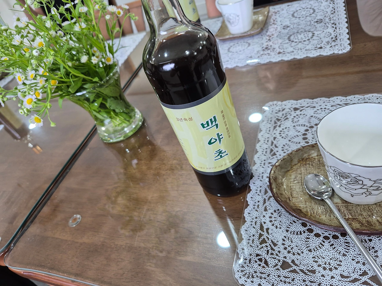 저녁식사 시간에도 효소를 탄 물 두 잔을 마시고,