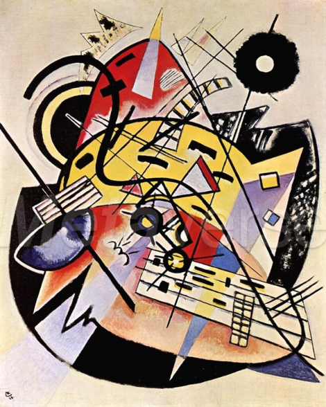 칸딘스키는 이 작품에 대해서 '위로 솟아오르는 선은 빠르고 경쾌한 리듬을, 부드럽고 완만한 선은 느리고 조용한 리듬을 느끼게 하며, 색채 중 색조는 음색, 색상은 가락, 채도는 음의 크기를 연상시킨다.'라고 설명했습니다.