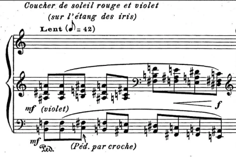 메시앙은 음악이 조성이나 선법 등의 이론으로 설명되는 것이 아니라, 색채로 설명할 수 있다고 생각했습니다.