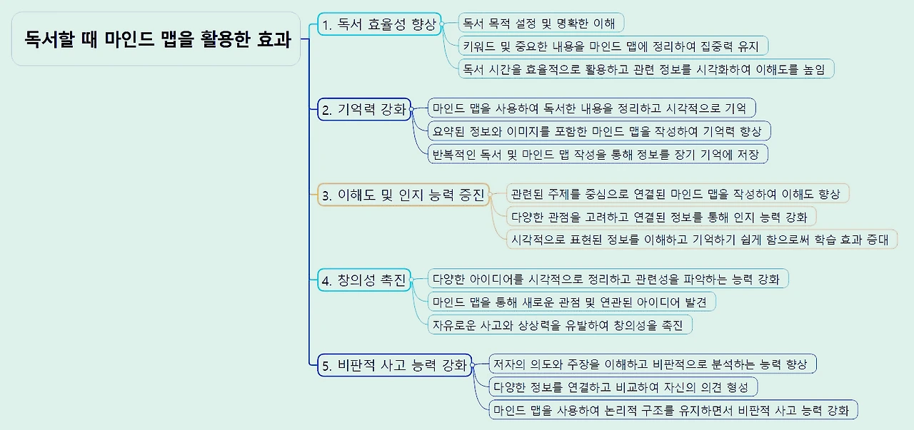 마인드 맵을 사용하여 독서한 내용을 정리하고 시각적으로 기억