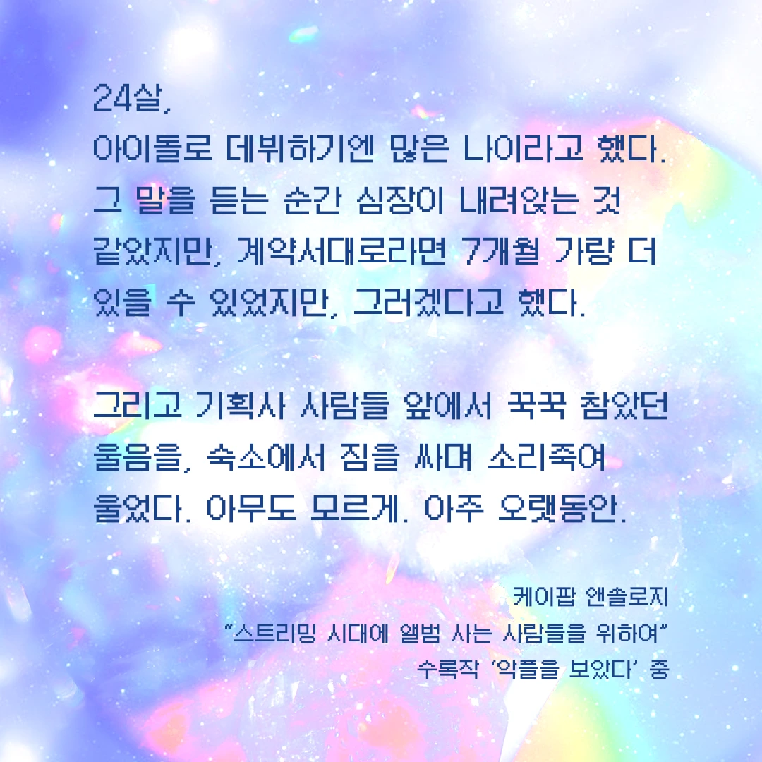 우리는 케이팝과 어떤 형태로든 관계를 맺고 살아가요. 케이팝 팬이든 아니든, 어떤 노래를 들으면 그 시절이 떠오른 경험이 한 번쯤은 있을 거예요.