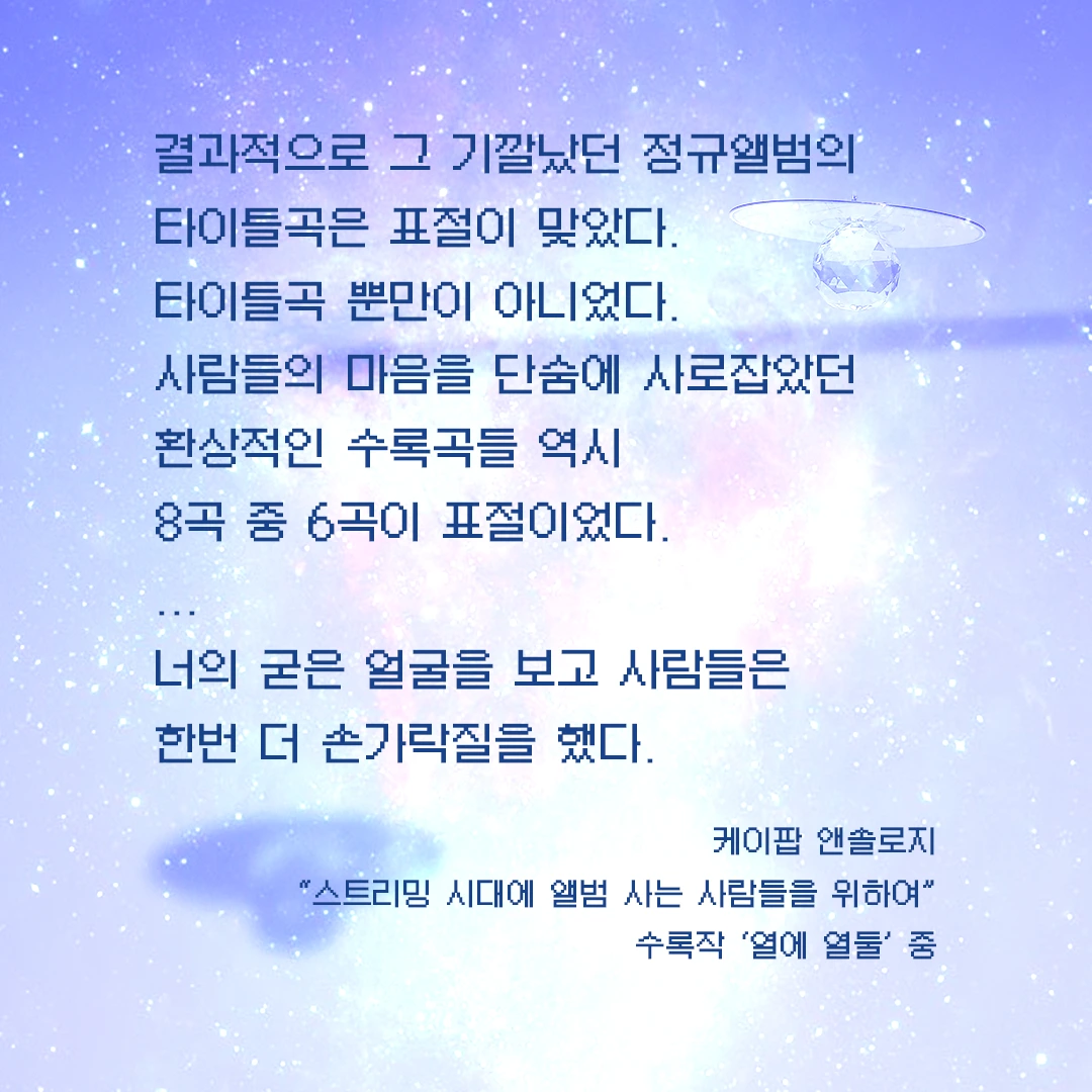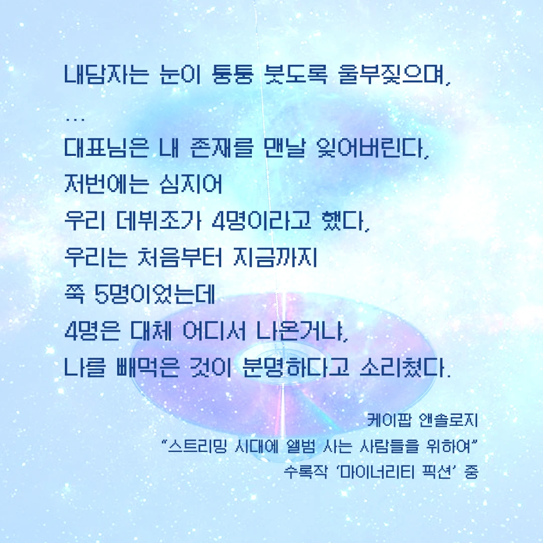 동료 작가들과 앤솔로지 <스트리밍 시대에 앨범 사는 사람들을 위하여(스. 밍. 사.)>를 준비하고 있었거든요.