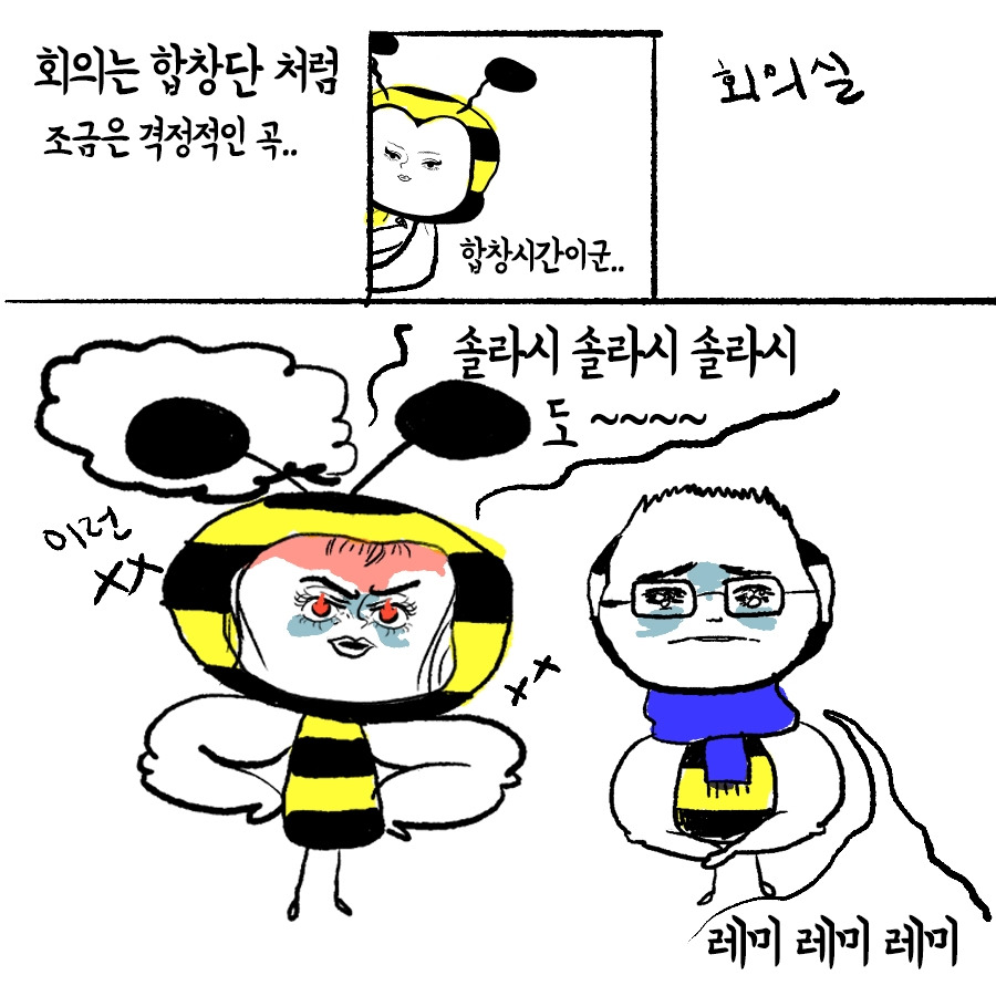 오늘도 팀장님은 화가 많이 나셨다. 우연히 맡으신 헤이즐럿 커피향에도 소녀처럼 꺄르륵 즐거워하시는 팀장님이시지만... 이곳은, 이 세상은! 소녀같은 팀장님을 최종병기그녀로 만들어버렸다. 때를 잘못 찾으신 애꿎은 옆 부서 팀장님만 고생이다. 어쩌겠는가, 좋은 때란 이제 없는 걸...