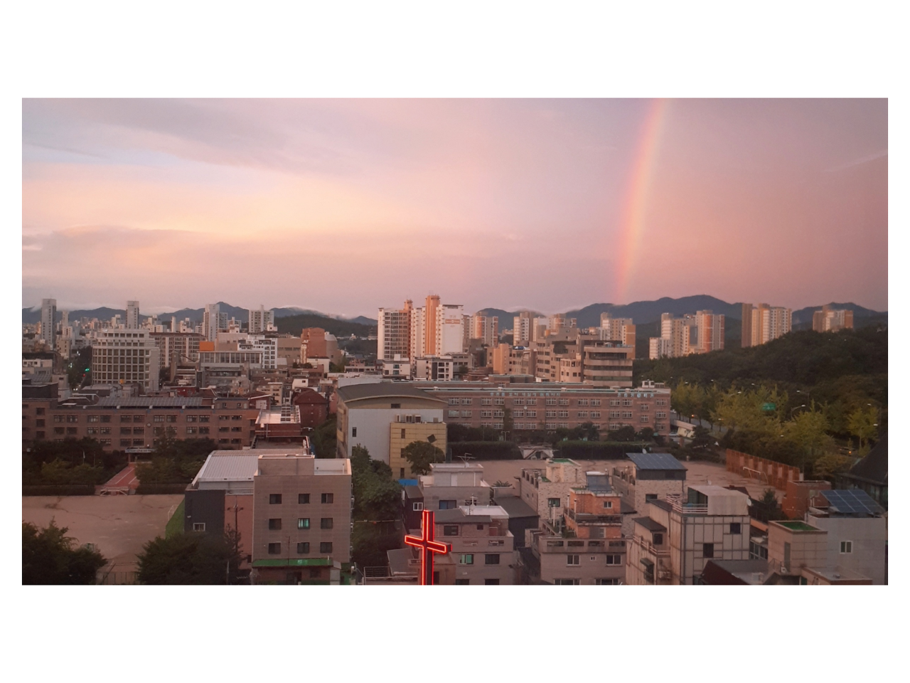 사람들의 옷이 젖는 것 따위는 신경도 쓰지 않는다는 듯 거세게 내리던 빗줄기는 점점 잦아들고, 언제 그랬냐는 듯 하늘이 맑게 개었습니다. 고운 빛깔의 무지개와 함께요. 너무나도 싹 바뀐 하늘의 표정에 어이가 없다가도 그 모습이 너무 예뻐 결국 카메라를 들고야 말았습니다. 이렇게 항상 예쁜 날만, 밝은 날만 있으면 좋으련만, 직장의 날씨는 변화무쌍합니다.