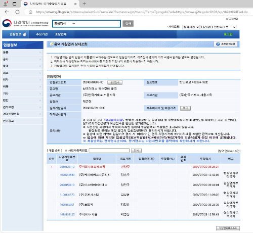 2022년 7월에 실시한 입찰에서 최종낙찰자로 선정된 프로에스콤은 24년 7월의 입찰