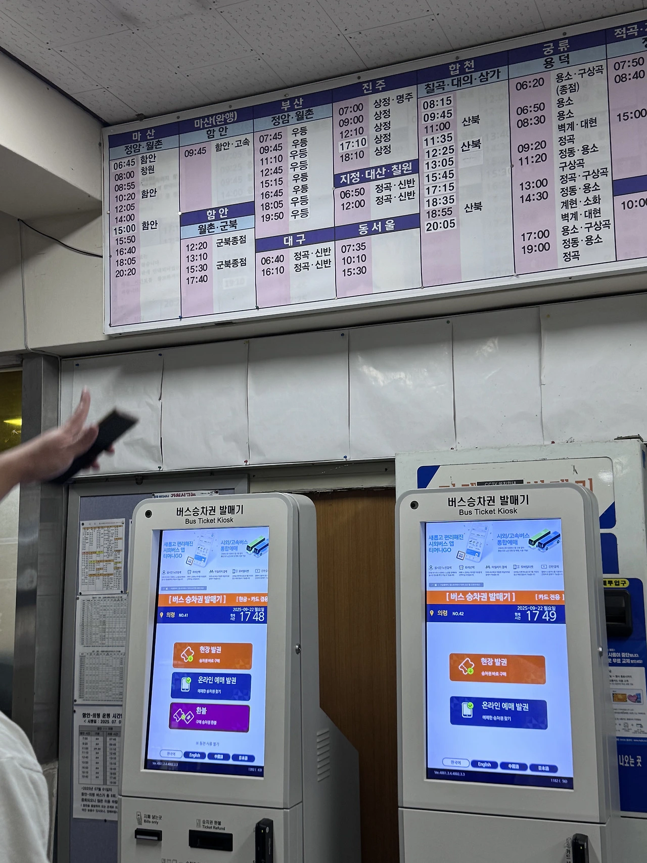 그 전에 버스 시간표를 확인하기 위해 다 함께 버스터미널로 들렀다.