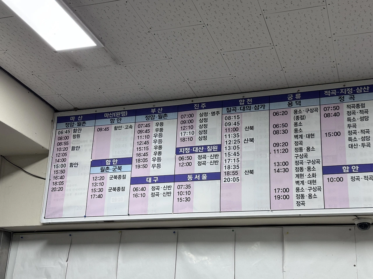 나도 의령을 벗어나 집에 잠시 다녀와야 할 일이 있을 테니 버스 시간표를 찍어두었다.