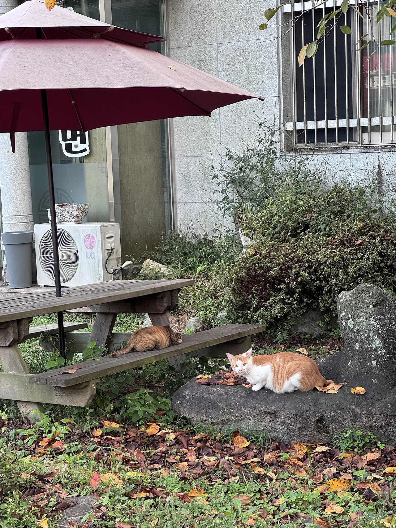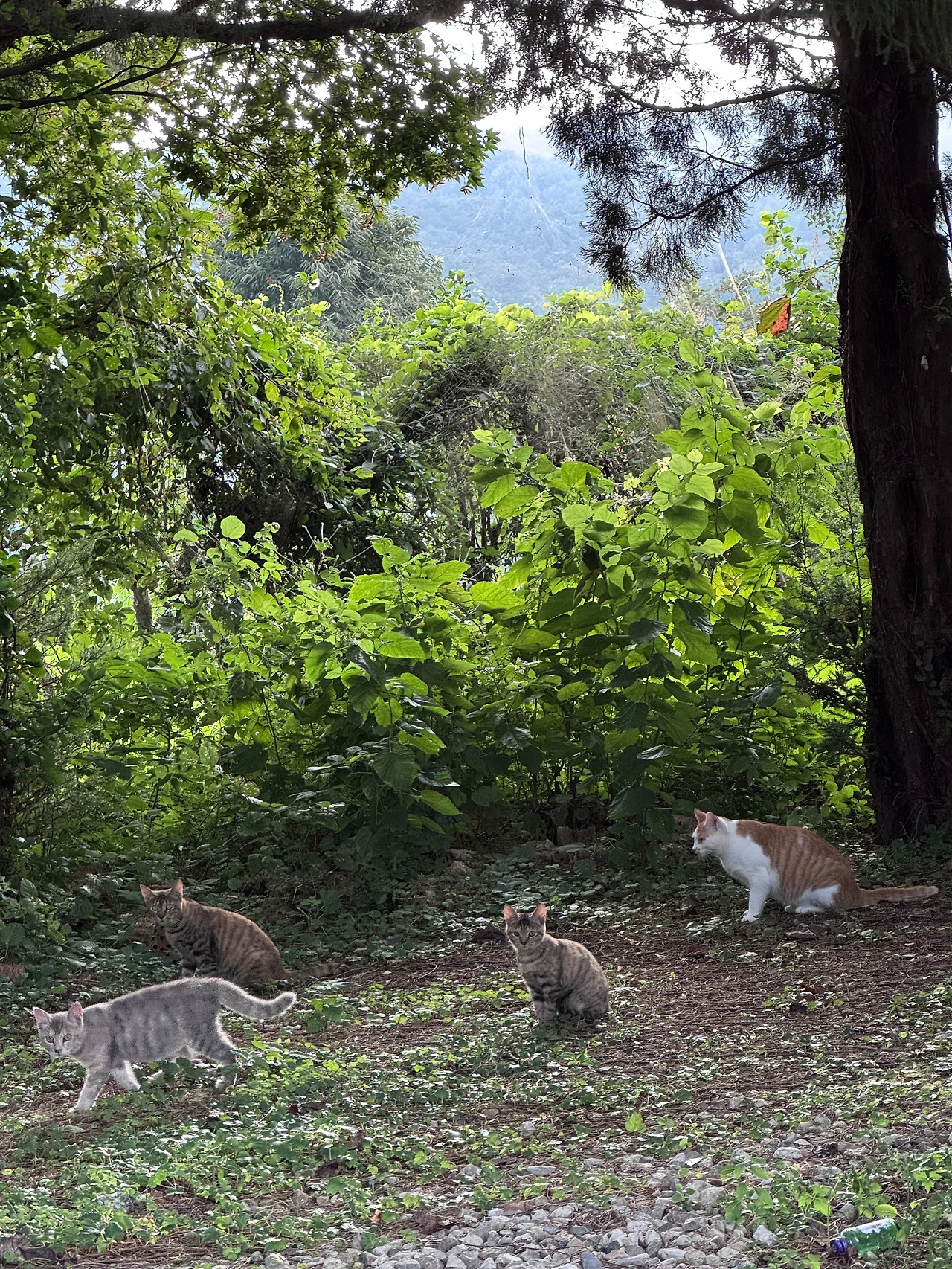 신난 마음으로 가방에 챙겨둔 고양이 간식을 꺼내 들고 가까이 다가갔더니, 간식 냄새를 맡은 고양이들이 하나둘씩 모습을 드러냈다.
