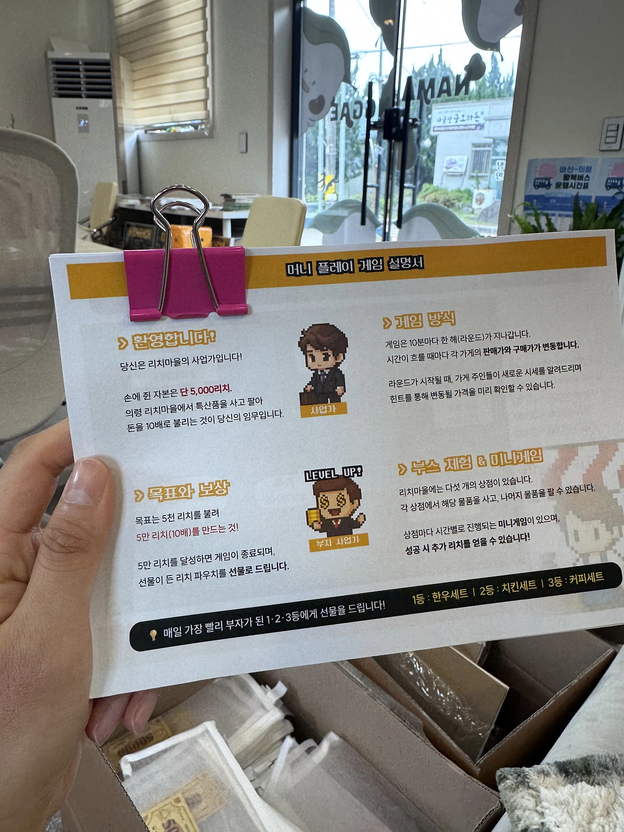 처음부터 내가 담당했던 게임 설명서를 프린터로 뽑았다. 축제를 위한 준비가 하나씩 차근히 되어가고 있다는 게 실감 났다.