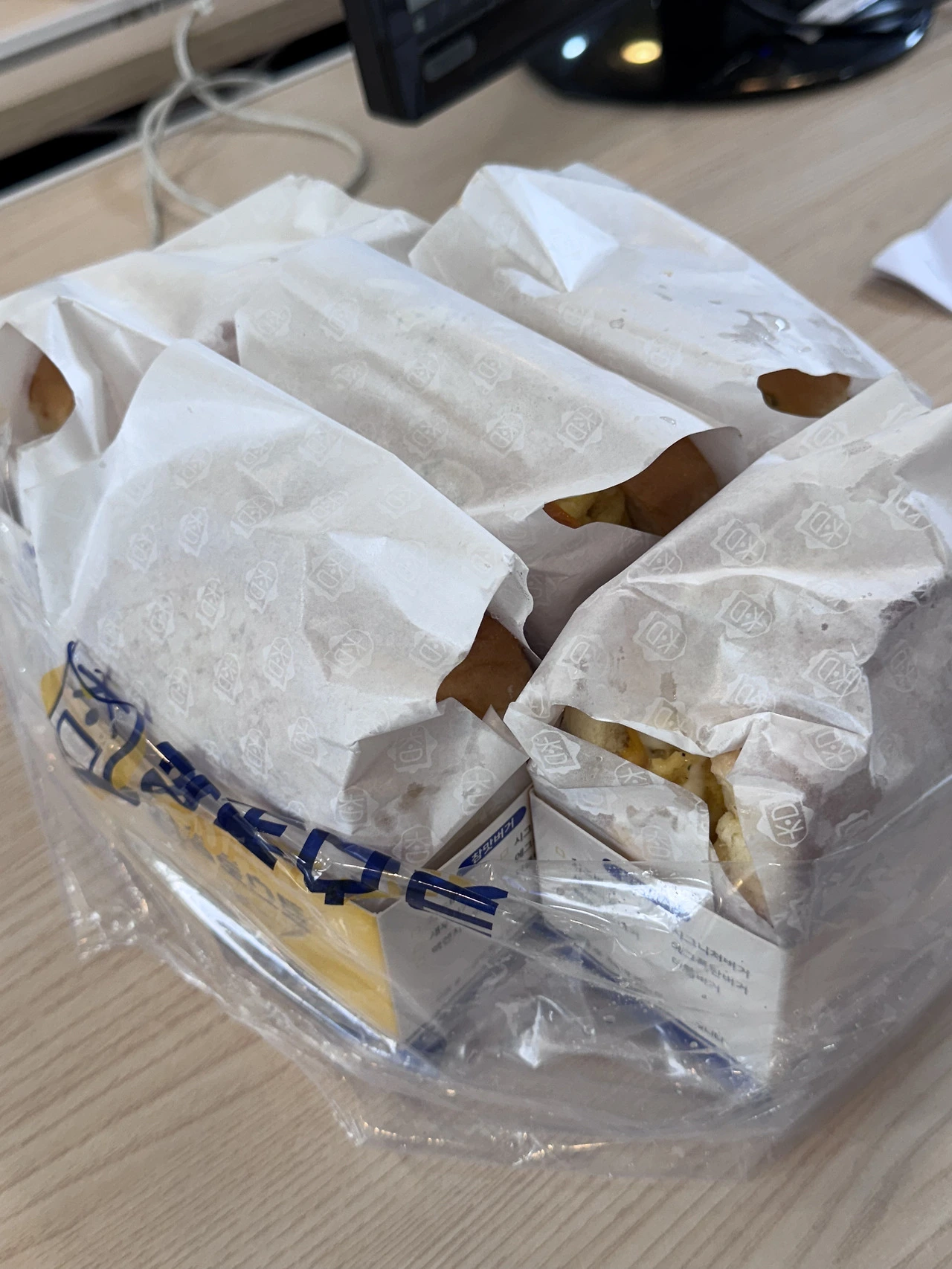 왕바우가 함께 먹자며 커피와 토스트를 사 와서,