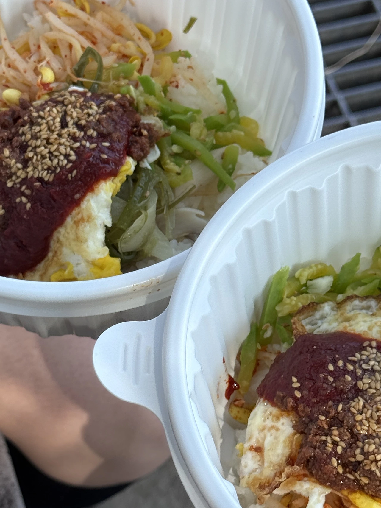 점심을 먹으려고 비빔밥을 챙겨들고 밖으로 나왔다.